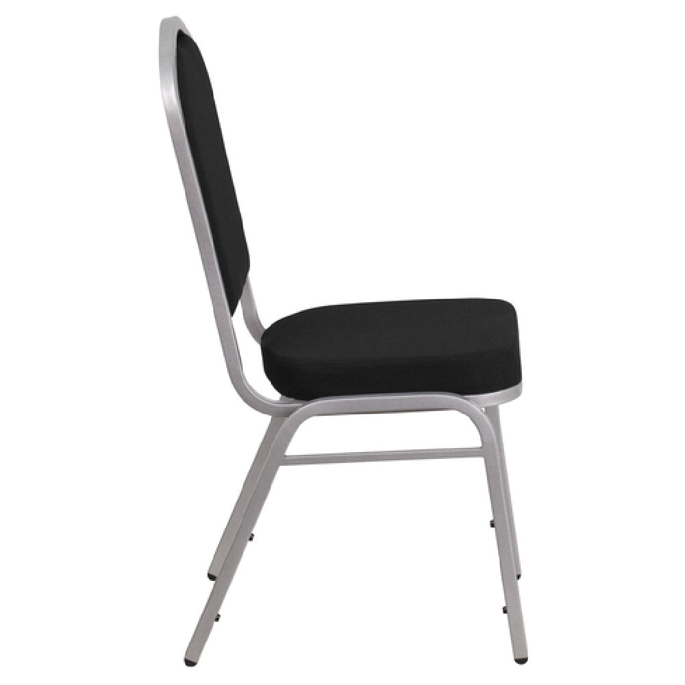 The Flash Furniture FD-C01-S-11-GG Hercules Series Stacking Banquet Chair is engineered to support up to 500 pounds, making it a robust option for various commercial settings such as banquet halls, conference centers, and hospitality venues. This chair features a distinctive crown design with a seamless back panel, providing both elegance and comfort. The seat and back are upholstered in fabric, incorporating a 2-1/2" thick CA117 fire retardant foam seat, ensuring safety and durability. Built with a 16-gauge steel frame, it offers exceptional strength and stability, while the silver powder-coated finish adds a touch of sophistication. Double support braces enhance the chair's structural integrity, and plastic bumper guards protect against wear and tear during stacking. Designed for efficient storage, these chairs can be stacked up to 14 high, optimizing space in commercial environments. Equipped with plastic floor glides, they protect flooring surfaces from scratches and damage. Delivered fully assembled, the Flash Furniture FD-C01-S-11-GG is ready for immediate use, providing practicality and reliability for heavy-duty applications. This chair combines robust engineering with functional design, catering to the diverse needs of the commercial furniture market by offering a durable and stylish seating solution.