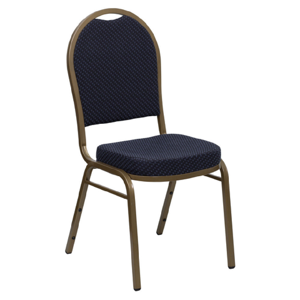 The Flash Furniture FD-C03-ALLGOLD-H203774-GG Hercules Series Stacking Banquet Chair is a robust and versatile seating option designed to meet commercial demands. With a substantial weight capacity of 500 pounds, this chair caters to various event settings, from banquet halls to conference rooms. Its dome design seamless back panel, coupled with patterned fabric upholstery on both the seat and back, offers both comfort and aesthetic appeal. The chair features a 2-1/2 inch thick CA117 fire retardant foam seat, ensuring safety and comfort. Constructed with a 16 gauge steel frame, it is enhanced by a gold powder-coated finish for added durability and elegance. The inclusion of double support braces and plastic bumper guards reinforces its structural integrity, while plastic floor glides protect surfaces during use. Designed for practicality, this chair can be stacked up to 14 chairs high, optimizing storage space. It ships fully assembled, ready for immediate use, and is usually dispatched within 24 hours for in-stock items. This chair is an ideal choice for establishments seeking reliability and style in their seating solutions.