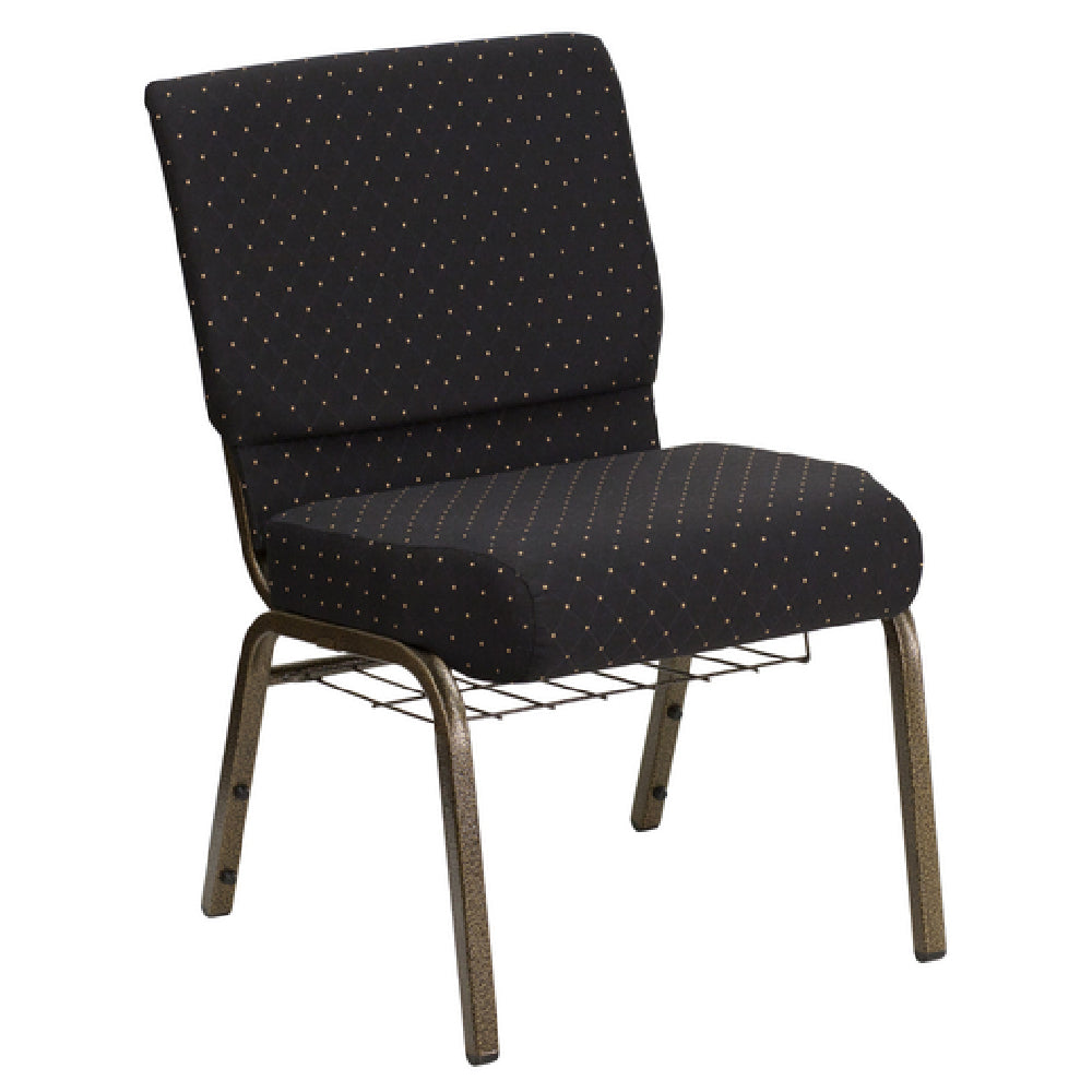 The Flash Furniture FD-CH0221-4-GV-S0806-BAS-GG Hercules Series Extra Wide Stacking Church Chair is engineered for durability and comfort, with an impressive weight capacity of 800 lbs. This chair features a dot-patterned fabric upholstery that enhances its aesthetic appeal while offering a soft seating experience. The seat is crafted with a 4-inch thick padding, complemented by a 5-inch thick waterfall edge, providing extended comfort for long periods of sitting. Safety and quality are ensured with CA117 fire retardant foam, making it a reliable choice for community and worship spaces. A practical book pouch is conveniently located on the back of the chair, while a steel book rack equipped with a communion cup holder offers additional functionality. Constructed with a robust 16-gauge steel frame and a sophisticated gold vein frame finish, this chair is designed for longevity. Ganging brackets are included for easy attachment of multiple chairs, promoting seamless seating arrangements. The plastic rocker glides protect floors from scratches and ensure silent movement. Available in black, this chair requires assembly and in-stock items generally ship within 24 hours, making it a versatile seating solution for churches, conference rooms, and community centers seeking quality and convenience.