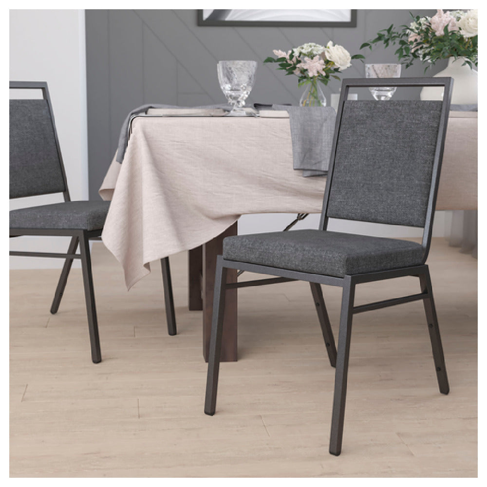 The Flash Furniture FD-LUX-SIL-DKGY-GG Hercules Series Stacking Chair is a robust seating solution engineered for durability and versatility across various industries. This chair boasts an impressive 600 lb. weight capacity, making it suitable for a wide range of users and settings where strength and durability are paramount. The dark gray vinyl upholstered back and seat provide a sleek and professional appearance, ensuring both comfort and easy maintenance. The chair's silver vein metal frame is equipped with support braces, enhancing its structural integrity and ensuring stability during use. Designed for space-saving efficiency, this stacking chair is perfect for venues requiring quick setup and takedown, such as conference halls, banquet facilities, and educational institutions. Its understated elegance and robust construction make it an ideal choice for environments where both function and form are essential. The combination of high weight capacity, sturdy construction, and aesthetic appeal positions the Flash Furniture FD-LUX-SIL-DKGY-GG Hercules Series Stacking Chair as a versatile and reliable seating option across various market segments.