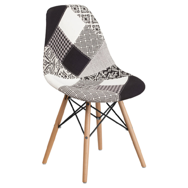 The Flash Furniture FH-130-DCV1-PK4-GG Elon Series Accent Side Chair contoured design offers a sophisticated blend of form and function, suited for various commercial environments. This chair features a contoured design that ensures both aesthetic appeal and ergonomic comfort, with an upholstered polypropylene molded back and seat that provide durability and style. It incorporates a waterfall seat design aimed at reducing pressure on the legs for enhanced comfort during prolonged seating. Safety and quality are prioritized with the inclusion of CA117 fire retardant foam, making it suitable for environments with stringent safety requirements. The chair is supported by a sturdy wood base, reinforced with metal bracing to ensure longevity and stability. For ease of movement and to protect flooring, it comes equipped with plastic floor glides. The Turin patchwork fabric adds a unique visual element, setting it apart in any setting. Designed for commercial use, this chair is not only a functional seating solution but also a stylish addition to office spaces, waiting areas, or dining establishments. Typically in stock, it generally ships within 24 hours, catering to businesses with urgent furnishing needs.