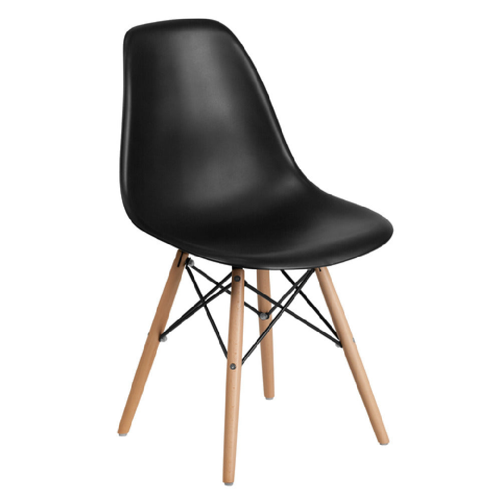 The Flash Furniture FH-130-DPP-BK-GG Elon Series Accent Side Chair is a meticulously designed piece that integrates both style and functionality, making it a prime choice for diverse market segments within the commercial furniture industry. Featuring a contoured design that enhances ergonomic comfort, this chair is crafted with a polypropylene molded back and seat, ensuring durability and ease of maintenance. The waterfall seat design promotes better leg circulation, adding to the chair's comfort profile. Supported by a robust wood base, the chair is further reinforced with metal bracing for added stability. Adjustable floor glides are incorporated, allowing for easy leveling on uneven surfaces, which is particularly beneficial for commercial environments where floor types may vary. The chair's sleek black plastic finish offers a modern aesthetic that effortlessly complements various interior settings. Designed for commercial use, the FH-130-DPP-BK-GG Elon Series is ideal for settings that require durable and stylish seating solutions, such as offices, waiting rooms, or cafes. With in-stock items typically shipping within 24 hours, this chair is not only a practical choice but also a convenient one for businesses that require prompt delivery. Its thoughtful design and reliable construction make it a standout option in its category.