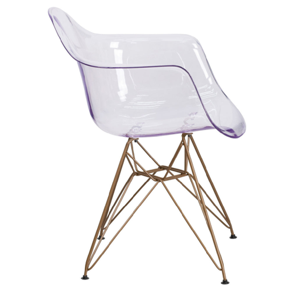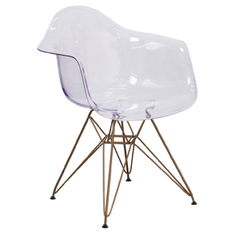 The Flash Furniture FH-132-CPC1-GG Allure Series Arm Chair is a meticulously designed seating solution, featuring a contour design that enhances ergonomic comfort and a waterfall seat to promote healthy posture. Constructed from molded polycarbonate, this chair is both durable and lightweight, making it ideal for various commercial settings. Its transparent crystal finish adds a modern touch, while the gold frame provides an elegant contrast, ensuring it complements diverse interior styles. The inclusion of curved arms not only contributes to the chair's aesthetic appeal but also offers additional comfort and support for the user. Adjustable floor glides are incorporated into the design, facilitating stability on uneven surfaces and minimizing floor damage. Engineered for commercial use, this armchair is tailored to meet the demands of high-traffic environments, such as restaurants, event venues, and waiting areas. In-stock items are typically shipped within 24 hours, ensuring prompt delivery for business needs. The Flash Furniture FH-132-CPC1-GG Allure Series Arm Chair combines functionality with sophisticated design, providing a versatile seating option that meets both aesthetic and practical requirements.