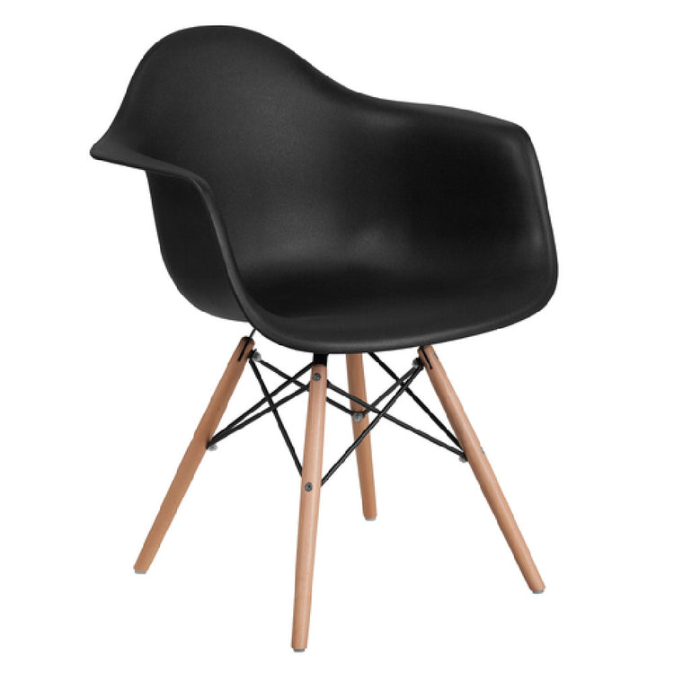The Flash Furniture FH-132-DPP-BK-GG Alonza Series Armchair is a versatile seating solution designed for commercial use, featuring a distinctive contour design and waterfall seat that enhances comfort. With its curved arms, the chair provides ergonomic support, making it suitable for various settings, from modern office spaces to stylish waiting areas. The chair's wood base, complemented by metal bracing, ensures durability and stability, accommodating frequent use in high-traffic environments. Equipped with adjustable floor glides, the Alonza Series Armchair adapts to uneven surfaces, maintaining a level seating experience. Constructed from black polypropylene, this chair combines aesthetic appeal with practical functionality, resistant to wear and easy to maintain. Its design seamlessly integrates with contemporary interior themes while offering a reliable seating option. Whether for hospitality, corporate, or educational sectors, this armchair meets diverse market needs, shipping swiftly with in-stock items usually dispatched within 24 hours. Its thoughtful design and robust features make it an ideal choice for businesses seeking a balance of style and utility.