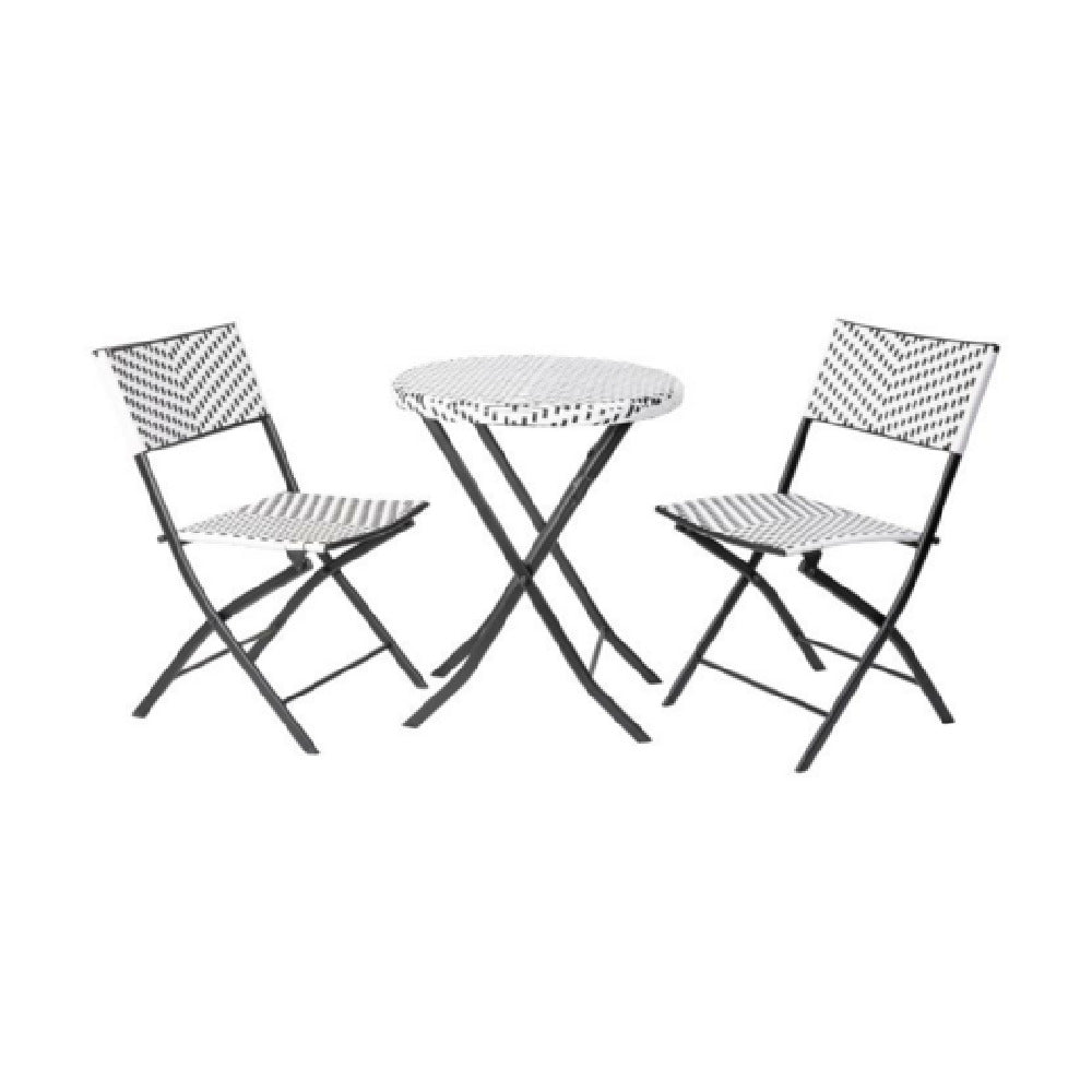 Flash Furniture FV-FWA085-BLK-WHT-GG Rouen Three Piece Commercial Grade Foldable French Bistro Set