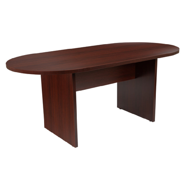 The Flash Furniture GC-TL1035-MHG-GG Conference Table - 6 Foot Smooth Laminate Top is a versatile and practical choice for a variety of professional settings. With its 6-foot length, this table provides ample space for meetings and collaborative work environments, making it ideal for conference rooms, boardrooms, and office meeting spaces. The smooth laminate top in a rich mahogany finish not only adds an elegant touch but also ensures a durable and easy-to-clean surface, catering to the needs of high-traffic areas. Supported by sturdy panel legs, the table is designed for stability, while the adjustable floor glides ensure a level surface on uneven flooring. These features combine to offer a reliable solution for businesses seeking both functionality and aesthetic appeal. The Flash Furniture GC-TL1035-MHG-GG Conference Table meets the demands of various industries, from corporate offices to educational institutions, with its balance of quality craftsmanship and sophisticated design.