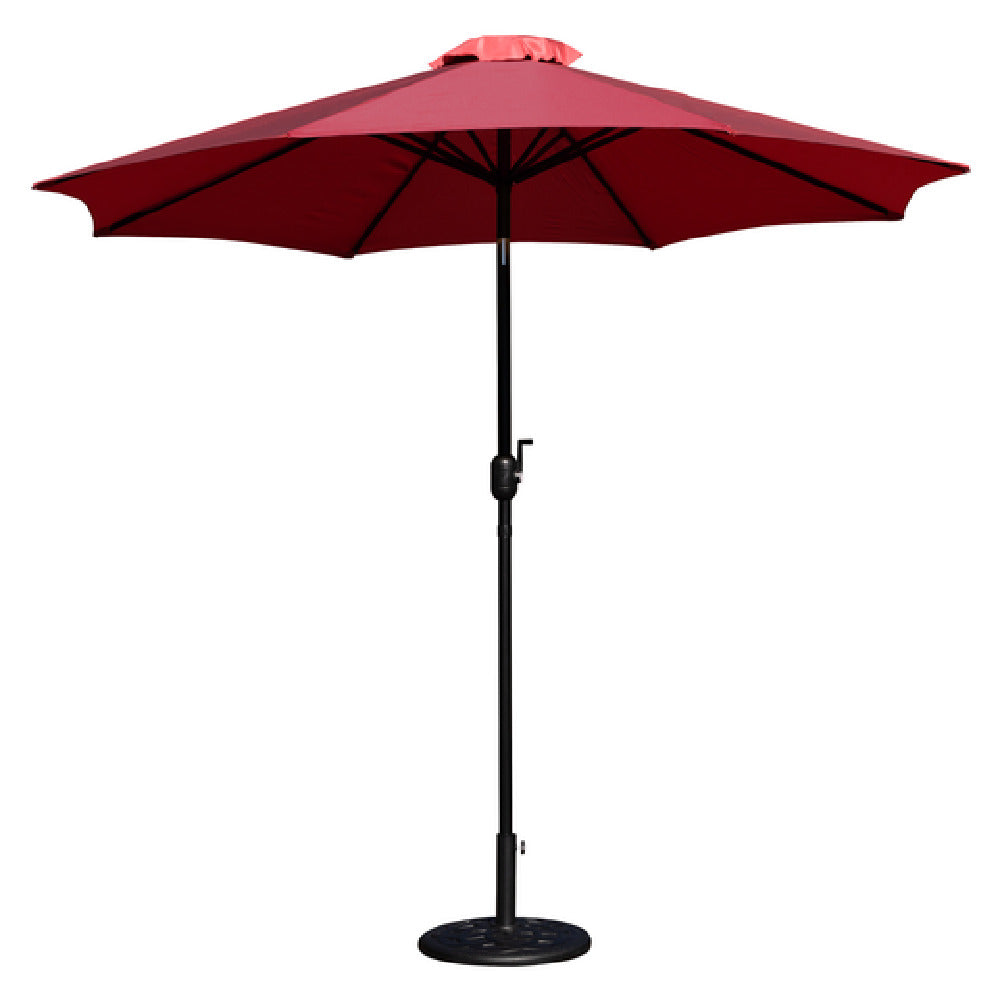 The Flash Furniture GM-402003-UB19B-RED-GG Patio Umbrella 9 Foot Round Top is a versatile outdoor accessory designed to enhance any patio setting. With its impressive 9-foot round top, this umbrella provides ample shade and protection from the sun. It features a 1-1/2 inch diameter aluminum pole, known for its durability and resistance to rust, making it ideal for various weather conditions. The umbrella is supported by a cement base, ensuring stability and preventing tipping. A unique aspect of this product is the inclusion of three adapters, accommodating poles up to 2 inches in diameter, allowing for customization based on user needs. The umbrella is finished with a powder coat, adding an extra layer of protection against the elements while maintaining a sleek aesthetic. The crank lift and tilt feature facilitate easy adjustment and positioning, enhancing user convenience. The red polyester fabric cover is both vibrant and resilient, designed to withstand prolonged exposure to sunlight without fading. Reinforced with steel ribs, the structure of the umbrella is robust, providing long-lasting performance. This patio umbrella caters to a diverse range of markets, from residential homeowners seeking style and functionality to businesses requiring durable outdoor solutions, making it a valuable addition to any environment.