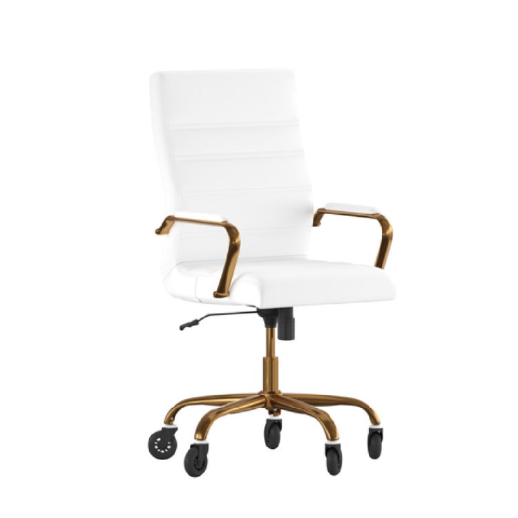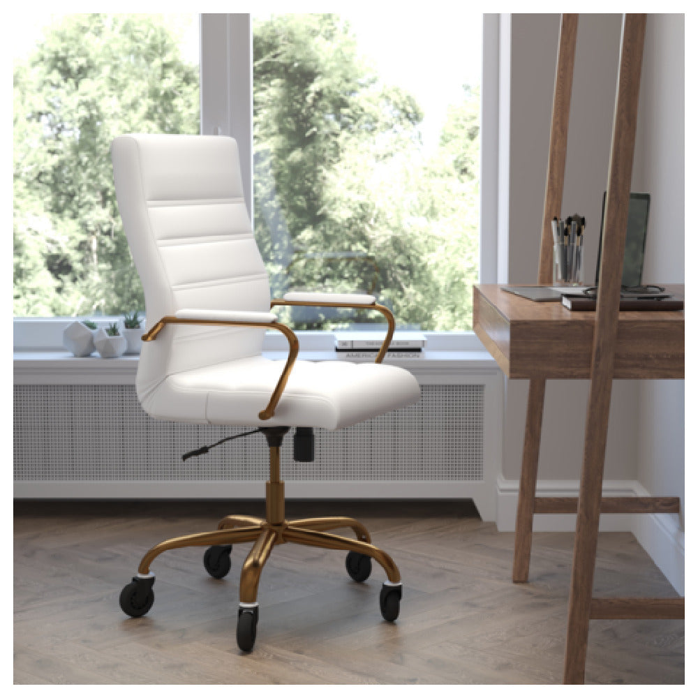 Flash Furniture GO-2286H-WH-GLD-RLB-GG Whiteney Executive Swivel Office Chair 39-1/4" To 43" Adjustable Height