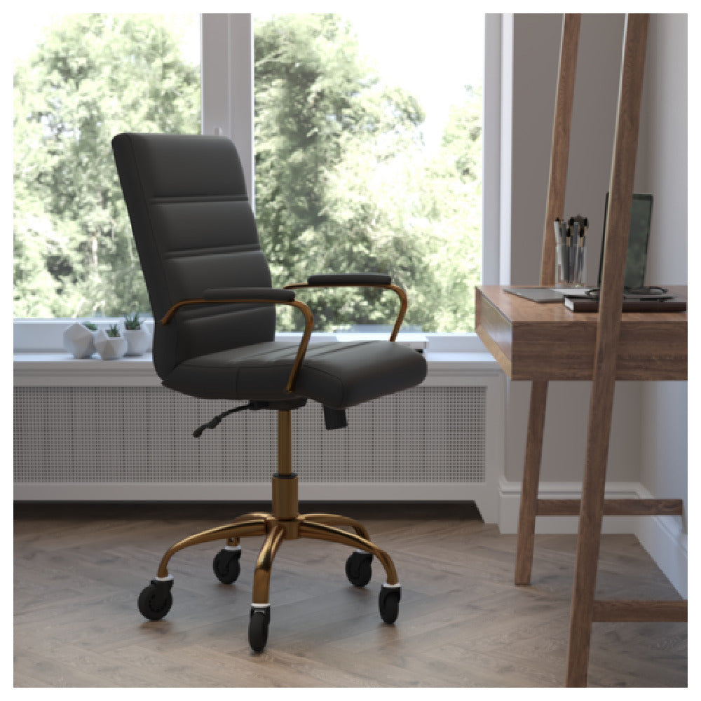 Flash Furniture GO-2286M-BK-GLD-RLB-GG Camilia Executive Swivel Office Chair 37" To 40-3/4" Adjustable Height