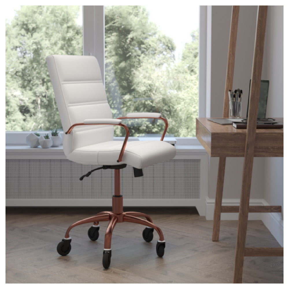 Flash Furniture GO-2286M-WH-RSGLD-RLB-GG Camilia Executive Swivel Office Chair
