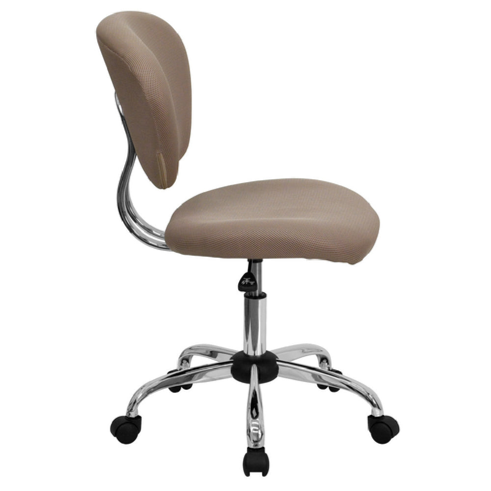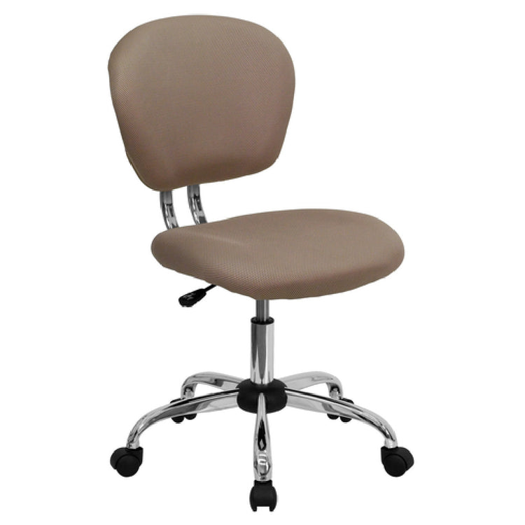 The Flash Furniture H-2376-F-COF-GG Swivel Task Chair is a versatile seating solution designed to accommodate various office and home environments. With an adjustable height ranging from 33-1/2 inches to 37-1/2 inches, this chair caters to users who require flexibility in their seating arrangements. It boasts a robust weight capacity of 250 lb., ensuring durability and reliability for a wide range of users. The chair features a mid-back design that provides adequate support for the upper and lower back, enhancing comfort during prolonged use. The padded mesh upholstered seat and back promote breathability, reducing heat buildup and increasing comfort. Notably, this model is designed without arms, offering an unobstructed workspace and ease of movement. Constructed with CA117 fire retardant foam, it prioritizes safety and compliance with fire safety standards. The heavy-duty chrome base enhances stability, while dual-wheel casters provide smooth mobility across various floor surfaces. Presented in a coffee brown finish, the chair requires assembly upon delivery. Its practical design and technical specifications make it suitable for different market segments, including corporate offices, home offices, and educational settings, where comfort and functionality are essential. In-stock items typically ship within 24 hours, ensuring prompt delivery and customer satisfaction.