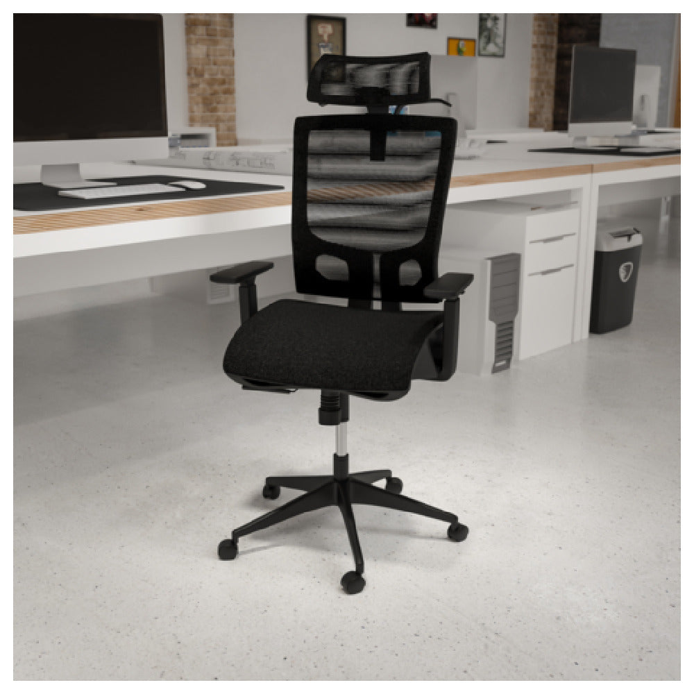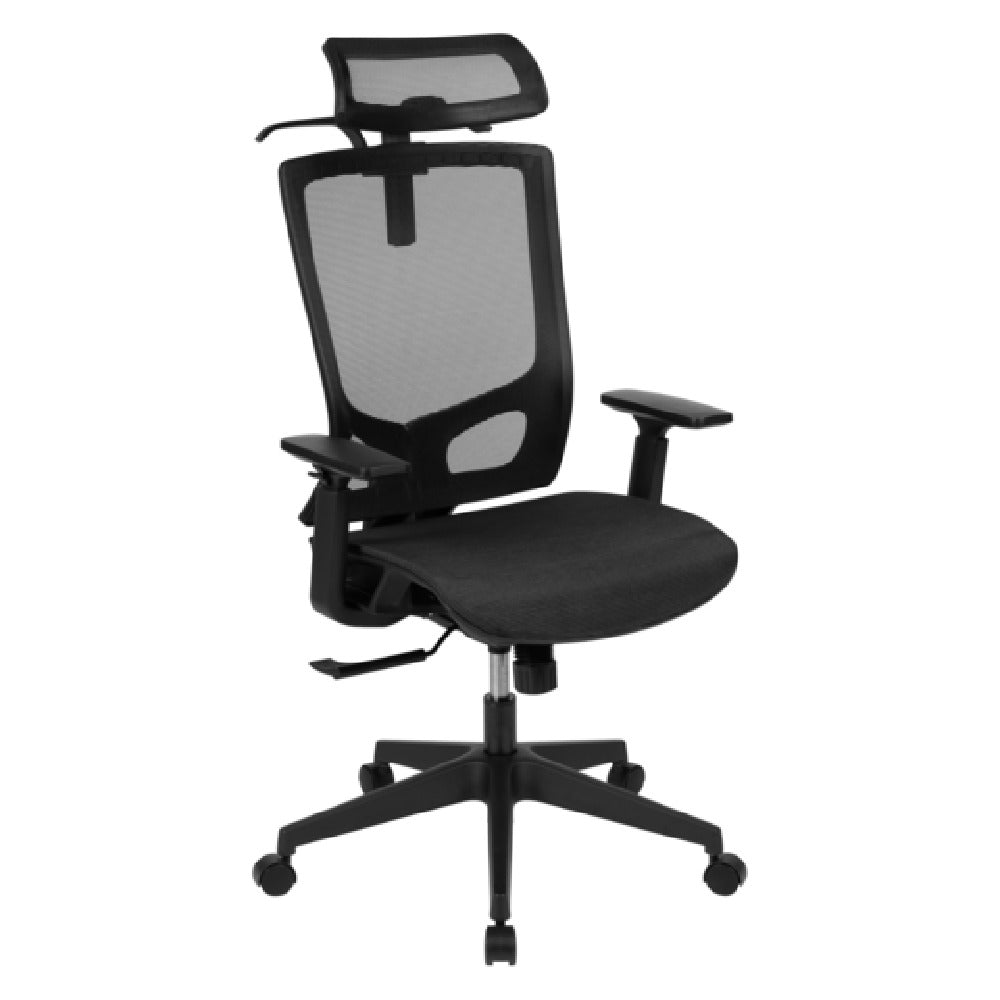 The Flash Furniture H-2809-1KY-BK-GG Layla Office Chair 18-3/4" to 22-1/4" Adjustable Height is a versatile seating solution designed to meet the ergonomic and comfort needs of various office environments. This office chair features a high back design and a breathable mesh back, providing essential support and promoting airflow for user comfort. It offers a weight capacity of 250 lb., making it suitable for a wide range of users. The chair is equipped with built-in lumbar support, ensuring proper posture and minimizing back strain during extended use. Its height adjustable arms and three-position 2-to-1 locking synchro tilt adjustment allow users to customize their seating experience for optimal comfort. The tilt tension adjustment knob further enhances the chair's adaptability, enabling users to control the resistance of the tilt. The pneumatic seat height adjustment allows for effortless seat height customization from 18-3/4" to 22-1/4". Supported by a sturdy nylon base and dual-wheel casters, this chair ensures stability and easy maneuverability across different floor surfaces. The Flash Furniture Layla Office Chair is a practical and ergonomic choice for professionals seeking reliable seating solutions in dynamic workspaces, although assembly is required.