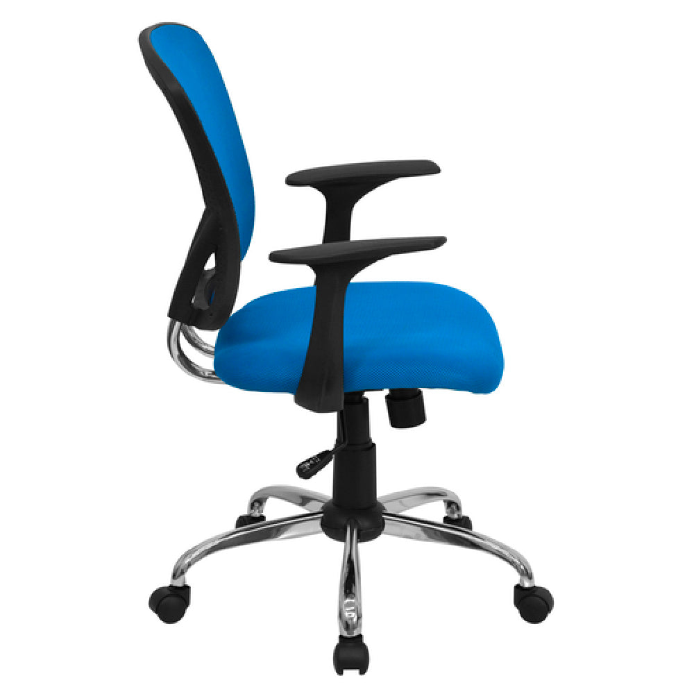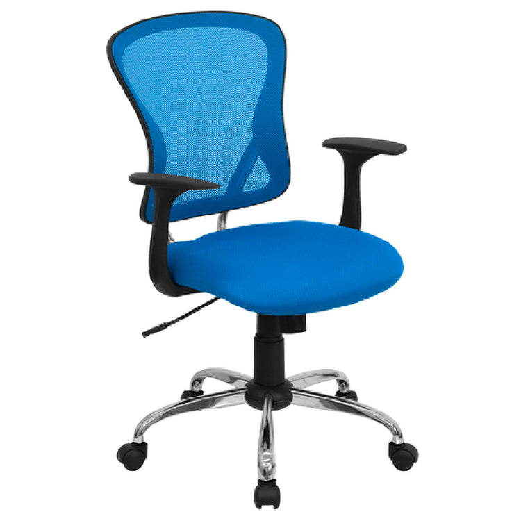 The Flash Furniture H-8369F-BL-GG Swivel Task/Office Chair 36-40 adjustable height is a versatile seating solution designed to enhance productivity and comfort in various work environments. Supporting a weight capacity of up to 250 lbs, this chair features a mid-back design coupled with a ventilated mesh back, promoting enhanced airflow for increased comfort. The padded mesh upholstered waterfall seat is engineered to reduce pressure on legs, while the built-in lumbar support provides critical lower back reinforcement. Users can customize their seating experience with the tilt lock mechanism and tilt tension adjustment knob, ensuring personalized comfort during extended sitting periods. This chair is equipped with durable nylon arms and is filled with CA117 fire retardant foam, emphasizing safety alongside comfort. Its heavy-duty chrome base not only adds a sleek aesthetic appeal but also enhances the chair's stability and longevity. Dual wheel casters facilitate smooth mobility across office floors. Available in a striking blue color, this chair requires assembly upon delivery, with in-stock items typically shipping within 24 hours. The Flash Furniture H-8369F-BL-GG is an optimal choice for various office settings, offering a blend of ergonomic features, safety, and design efficiency.
