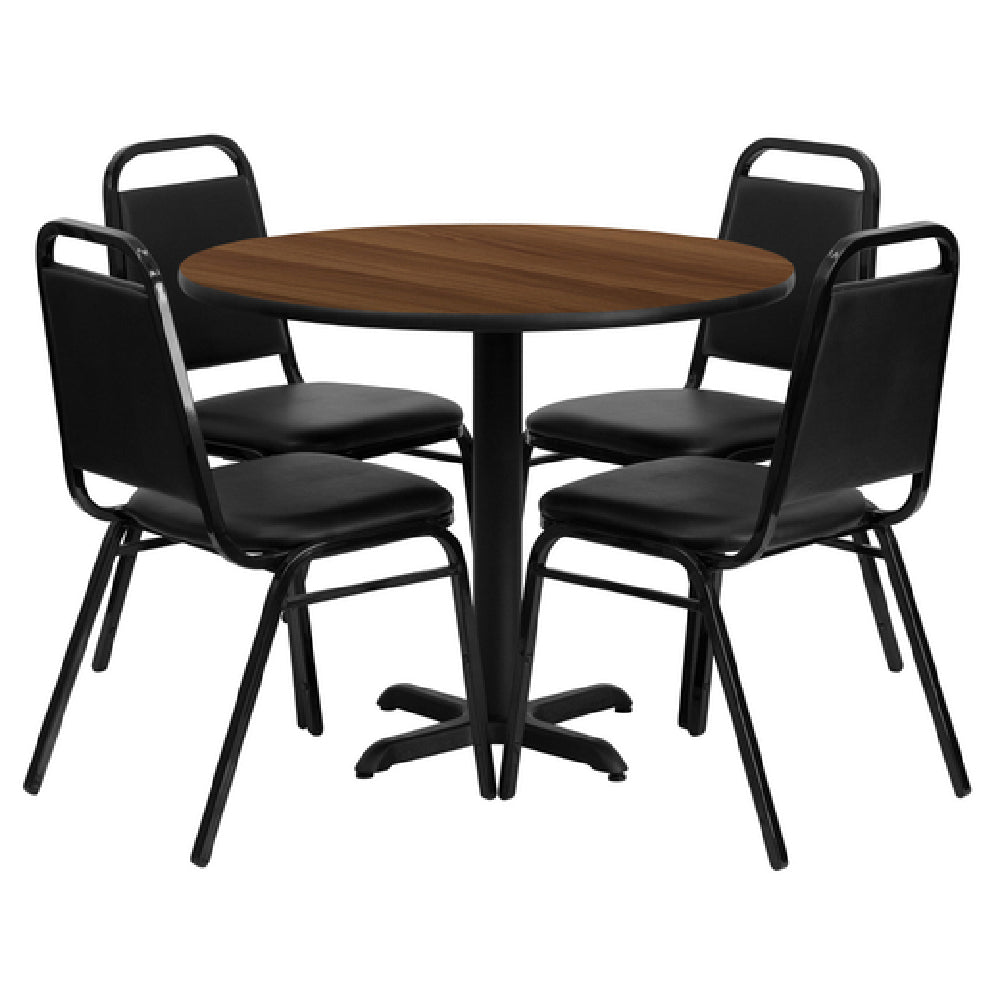 - Includes (1) 36" dia. x 30"H table with walnut laminate finish
