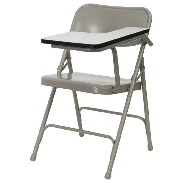The Flash Furniture HF-309AST-LFT-GG Premium Folding Chair is engineered for strength and versatility, boasting a 500 lb weight capacity. This chair features a specialized left-handed folding tablet arm with dimensions of 12-1/4"W x 15-3/4"D, providing ample space for note-taking or device placement. The high-pressure laminate gray surface with a black edge band enhances durability and aesthetics, making it suitable for high-traffic environments. Constructed with an 18-gauge steel frame and a steel back and seat, this chair ensures long-lasting performance. The beige powder-coated frame finish adds a layer of protection against wear and tear. For additional stability, the chair is equipped with double support cross rails and riveted steel components, essential for maintaining structural integrity under heavy use. The inclusion of non-marring glides prevents floor damage, making it an ideal option for commercial settings such as training rooms, conference facilities, or classrooms. Assembly is required, and in-stock items typically ship within 24 hours, ensuring quick delivery for urgent needs. The Flash Furniture HF-309AST-LFT-GG Premium Folding Chair is a practical and reliable solution across various industry segments, combining functionality with robust construction to meet diverse seating requirements.