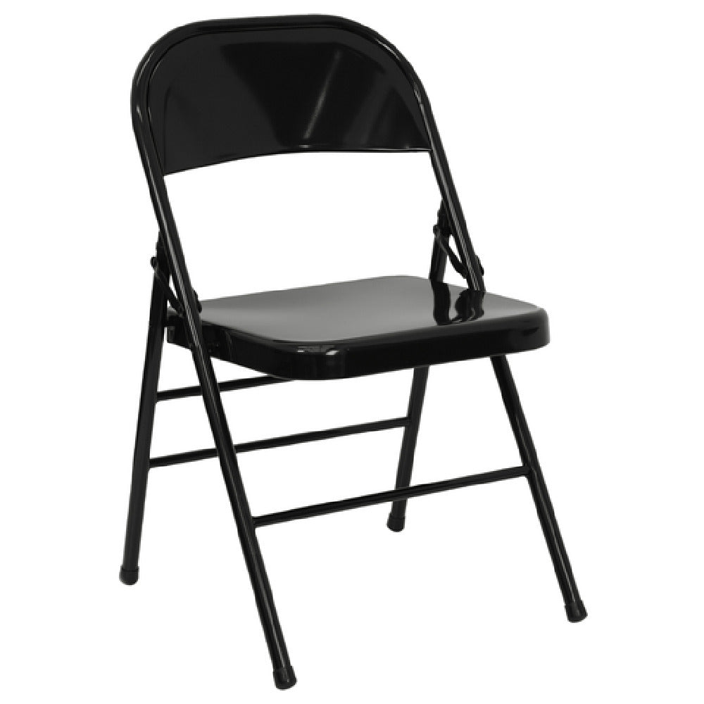 The Flash Furniture HF3-MC-309AS-BK-GG Hercules Series Folding Chair is a robust seating solution designed for diverse commercial settings. With a weight capacity of 300 pounds, this chair stands as a testament to durability and strength. Constructed from 18-gauge steel, the seat, back, and frame are engineered for longevity, providing reliable support for users. The triple-braced frame and double-hinged design further enhance its stability, ensuring it remains sturdy even under frequent use. This folding chair features riveted steel components, which add an extra layer of security to its construction. Its non-marring glides protect flooring surfaces, making it ideal for both indoor and outdoor use. The black powder-coated finish not only complements various decors but also provides resistance against weather elements, extending the chair's lifespan. As an item available for quick shipment, typically within 24 hours, it offers businesses the convenience of immediate availability. Whether for event hosting, conference settings, or casual gatherings, the Flash Furniture Hercules Series Folding Chair delivers a blend of functionality and resilience, making it a preferred choice across different market segments that require dependable and flexible seating options.