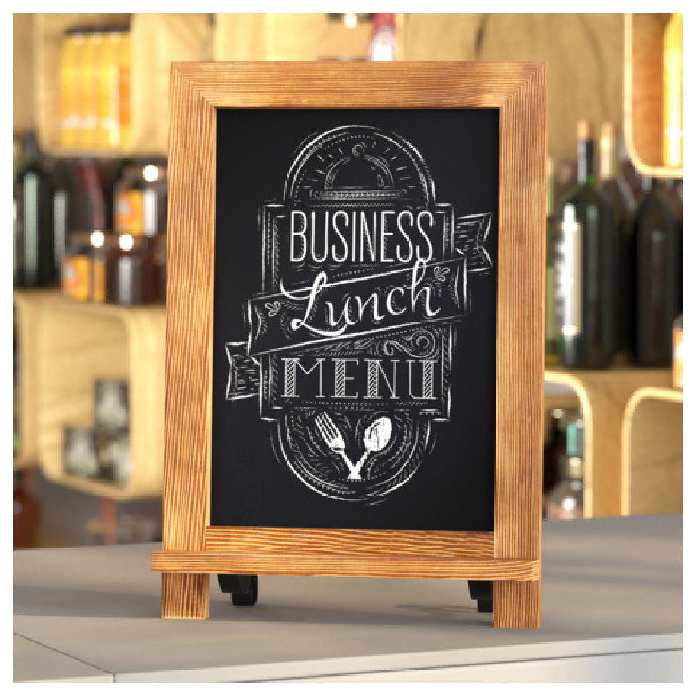 The Flash Furniture HFKHD-GDIS-CRE8-122315-GG Canterbury Magnetic Tabletop Chalkboard is a versatile and stylish communication tool suitable for various settings, including cafes, restaurants, and home kitchens. Measuring 9-1/2 inches by 14 inches, this compact yet effective chalkboard serves as an ideal solution for displaying menus, daily specials, or personalized messages. Its torched wood finish provides a rustic charm that complements a wide array of interior decors, while the metal scrolled legs add an elegant touch, ensuring stability and aesthetic appeal. The magnetic feature of the board offers enhanced functionality, allowing users to attach notes or lightweight items, thus expanding its utility. This tabletop chalkboard is designed to cater to the needs of businesses looking to enhance customer interaction with up-to-date information or simply a decorative element in a home setting. Its thoughtful craftsmanship and durable materials make it a practical and appealing choice for professionals and homeowners alike, who value both form and function in their decorative accessories.