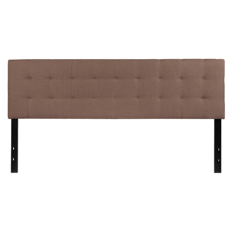 The Flash Furniture HG-HB1704-K-C-GG Bedford Headboard King Size Contemporary Style is a sophisticated piece designed to enhance any modern bedroom. This headboard features a king-size dimension, making it perfect for larger beds and providing a commanding presence in the room. It showcases a luxurious upholstered tufted panel that is both stylish and comfortable. The box stitch design adds a touch of elegance, which complements various decor styles. Supported by black metal stands with adjustable bed rail slots, the headboard ensures compatibility with different bed frames, offering flexibility for users. The fabric used is a rich camel color, providing a warm and inviting look that can enhance the aesthetic appeal of any bedroom space. Typically in stock, this headboard usually ships within 24 hours, making it a convenient choice for those looking to quickly upgrade their bedroom decor. Ideal for homeowners who appreciate contemporary style, this headboard seamlessly combines form and function to deliver a product that is both beautiful and practical.