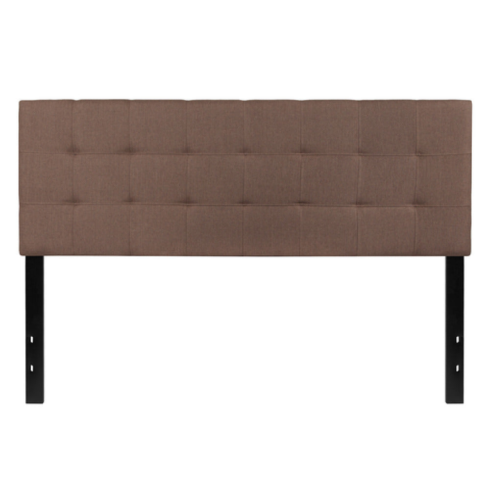 The Flash Furniture HG-HB1704-Q-C-GG Bedford Headboard Queen Size Contemporary Style is a distinguished addition to any modern bedroom setting. This headboard is crafted with an upholstered tufted panel that exudes elegance through its meticulous box stitch design. Constructed with durability in mind, it features sturdy black metal stands equipped with adjustable bed rail slots, providing flexibility for various bed frames. The headboard is adorned in a sophisticated camel fabric, adding a touch of warmth and style to your sleeping space. Measuring at queen size, it offers a generous presence, making it a focal point in the bedroom. The Flash Furniture Bedford Headboard is typically in stock and ships within 24 hours, ensuring swift delivery for promptly enhancing your decor. Its contemporary style is well-suited for different segment markets, including residential, hospitality, and interior design sectors, where its blend of form and function can be appreciated. This product stands out for its combination of aesthetic appeal and practical features, positioning it as a valuable choice for those seeking to enhance the modern ambiance of their living spaces.
