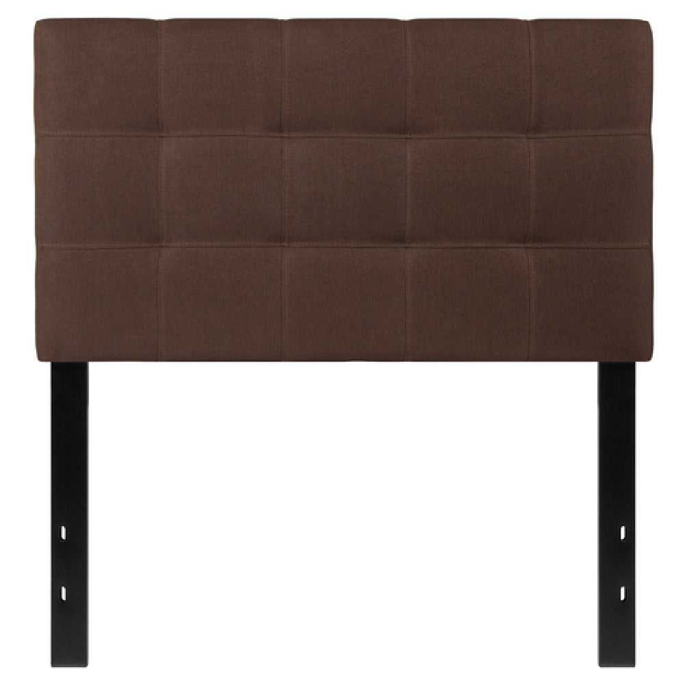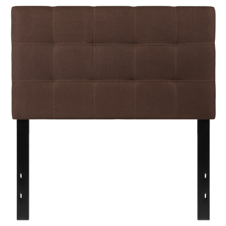 The Flash Furniture HG-HB1704-T-DBR-GG Bedford Headboard Twin Size Contemporary Style is a sophisticated addition to any bedroom, merging functionality with modern design. This headboard is upholstered with a tufted panel that adds a touch of elegance and texture to the bedroom decor. The box stitch design enhances its contemporary aesthetic, making it a versatile choice for various interior styles. Supported by black metal stands, the headboard features adjustable bed rail slots, allowing for a customizable fit with different bed frames. Crafted in a dark brown fabric, it offers a neutral yet warm tone that complements a wide range of color palettes. This piece not only provides a stylish backdrop for your bedding but also ensures durability and stability. Typically in stock and ready to ship within 24 hours, the Flash Furniture HG-HB1704-T-DBR-GG Bedford Headboard is designed to meet the needs of both residential and commercial markets, offering a reliable and attractive solution for those seeking to enhance their sleeping environments with contemporary flair. Whether for a personal bedroom or a hospitality setting, this headboard delivers on both aesthetic appeal and functional design.