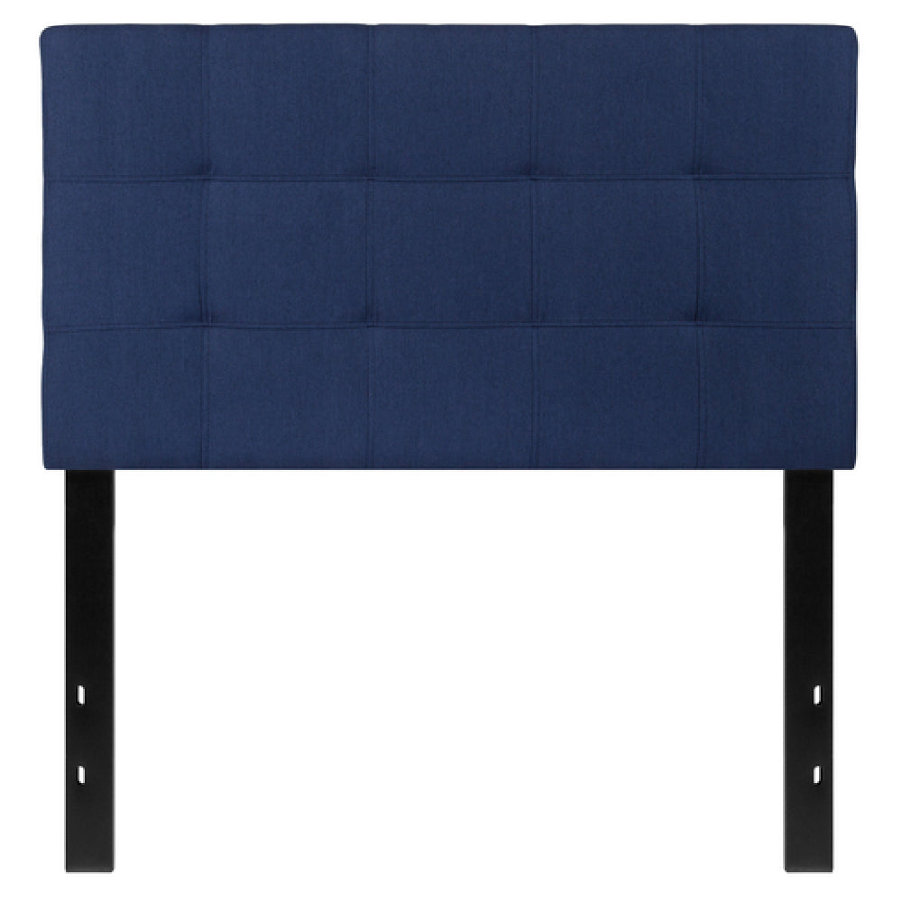 The Flash Furniture HG-HB1704-T-N-GG Bedford Headboard Twin Size Contemporary Style stands out as a versatile and stylish addition to any bedroom setting. This headboard features an upholstered tufted panel with a box stitch design, offering a modern aesthetic that blends seamlessly with contemporary décor. Crafted with durable black metal stands, it includes adjustable bed rail slots to cater to various bed frame configurations, ensuring flexibility and ease of installation. The headboard's fabric comes in a sophisticated navy hue, providing a touch of elegance and making it suitable for both kid's rooms and guest bedrooms. With its compact twin size, this headboard is perfect for limited spaces or urban apartments where space optimization is crucial. The Flash Furniture HG-HB1704-T-N-GG Bedford Headboard is typically in stock and ships within 24 hours, ensuring prompt delivery for last-minute furnishing needs. This product's thoughtful design and adaptable features make it an excellent choice for home decorators, interior designers, and furniture retailers looking to offer clients a blend of style and practicality.