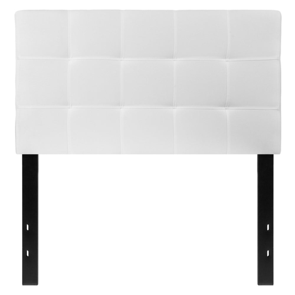 The Flash Furniture HG-HB1704-T-W-GG Bedford Headboard Twin Size Contemporary Style is a sophisticated addition to any bedroom, combining functionality with modern design. This headboard features an upholstered tufted panel with a box stitch design, offering an elegant aesthetic that complements a variety of decor styles. Crafted for twin-sized beds, it is supported by durable black metal stands equipped with adjustable bed rail slots, ensuring a secure fit with different bed frame configurations. The headboard is covered in white fabric, creating a clean and versatile look suitable for both residential and commercial settings such as hotels or guest houses. Its design facilitates quick and straightforward installation, typically shipping within 24 hours when in stock, reflecting Flash Furniture's commitment to efficiency and customer satisfaction. The contemporary style of the HG-HB1704-T-W-GG Bedford Headboard makes it an attractive option for interior designers and homeowners seeking to enhance their bedroom spaces with a touch of modern elegance. Its well-thought-out construction not only adds aesthetic value but also ensures long-lasting use, making it a practical choice for those in the market for a reliable, stylish headboard.