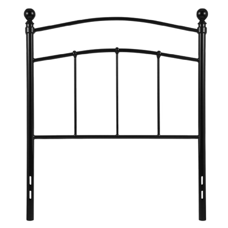 The Flash Furniture HG-HB1706-T-GG Woodstock Headboard - Twin Size Contemporary Style is a meticulously crafted piece designed to blend seamlessly with modern and contemporary bedroom aesthetics. This headboard features an open slat design that enhances its sleek and minimalist appearance, making it an attractive addition to any twin-size bed configuration. Constructed with a durable metal frame, the headboard ensures longevity and stability, benefiting from its sturdy round posts that provide additional support and visual appeal. The adjustable bed rail slots offer flexibility, accommodating various bed heights and preferences, thereby expanding its utility across different setups. Finished in a classic black color, this headboard complements a wide range of bedroom decors and color schemes. Ideal for residential use, this headboard is also suitable for commercial settings such as hotels or guesthouses, where style and durability are paramount. With immediate availability and a swift shipping time of usually within 24 hours, the Flash Furniture HG-HB1706-T-GG Woodstock Headboard ensures both quality and convenience for customers seeking a contemporary, reliable, and versatile headboard solution.