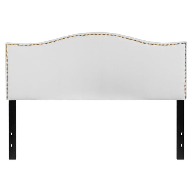 Flash Furniture HG-HB1707-Q-W-GG Lexington Headboard Queen Size Transitional Style is an elegantly designed headboard that combines classic and contemporary elements to complement a wide range of bedroom decors. This queen-size headboard features an upholstered panel with an arched top, creating a sophisticated silhouette that adds a touch of luxury to any bedroom setting. The brass nailhead trim outlines the edges of the headboard, offering a refined accent that enhances its aesthetic appeal. Supported by sturdy black metal stands, the headboard includes adjustable bed rail slots, ensuring compatibility with various bed frames and allowing for easy installation. Crafted from high-quality fabric in a pristine white color, this headboard provides a versatile and neutral backdrop that can seamlessly integrate into diverse interior designs. Typically in stock and ready to ship within 24 hours, the Flash Furniture HG-HB1707-Q-W-GG Lexington Headboard is a superb choice for homeowners, interior designers, and the hospitality industry seeking to achieve a transitional style in bedroom environments. Its blend of functionality and visual charm makes it a valuable addition to any bedroom, providing both comfort and elegance without compromising on quality.