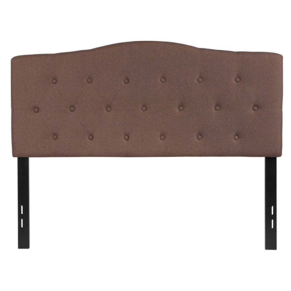 Flash Furniture HG-HB1708-F-C-GG Cambridge Headboard Full Size Contemporary Style is a meticulously designed headboard that complements modern bedroom aesthetics with its elegant and functional features. The headboard showcases an upholstered button tufted panel, offering a sophisticated diamond pattern stitching that adds a touch of luxury to any bedroom setting. Supported by black metal stands, this headboard includes adjustable bed rail slots, allowing for versatile compatibility with a variety of bed frames. Constructed with a durable fabric in a warm camel color, this headboard requires assembly, ensuring a personalized touch upon setup. Designed to meet the diverse needs of different market segments, this contemporary headboard is tailored for those seeking a balance of style and functionality in a full-size bed setting. With its in-stock status, the product is typically ready for shipping within 24 hours, making it an accessible choice for immediate furnishing needs. The Flash Furniture Cambridge Headboard stands out as a unique value proposition in the home furnishings industry, appealing to consumers who prioritize both design and practicality in their bedroom decor.