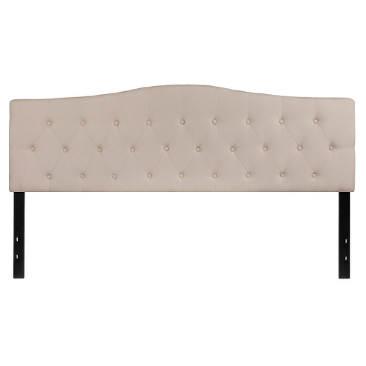 The Flash Furniture HG-HB1708-K-B-GG Cambridge Headboard King Size Contemporary Style is a sophisticated addition to any modern bedroom setting. This headboard is designed with an upholstered button tufted panel, showcasing meticulous diamond pattern stitching that adds a touch of elegance to its overall aesthetic. The fabric is a soft beige, providing versatility to match various color schemes and décor styles. Supported by sturdy black metal stands, this headboard features adjustable bed rail slots, ensuring compatibility with different bed frames and allowing for customizable height adjustments to suit personal preferences. The contemporary style of the Cambridge Headboard blends seamlessly into both minimalist and richly decorated spaces, making it a practical choice for homeowners, interior designers, and the hospitality industry. The inclusion of these technical features underscores the product's commitment to both style and functionality, emphasizing a unique value proposition for those seeking a blend of durability and aesthetic appeal. Typically available for quick shipment, it usually ships within 24 hours when in stock, catering to time-sensitive projects or last-minute design updates. The Flash Furniture HG-HB1708-K-B-GG is not just a decorative element but a functional one, offering enhanced support and style to any king-size bed setup.