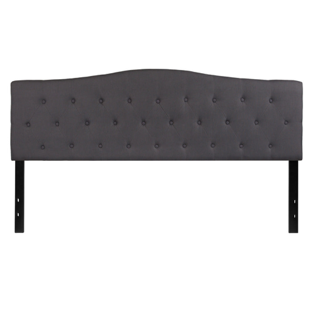 The Flash Furniture HG-HB1708-K-DG-GG Cambridge Headboard King Size Contemporary Style is a sophisticated addition to any bedroom, meticulously crafted for those who appreciate modern elegance and functional design. This headboard features an upholstered button tufted panel, offering a plush visual appeal with its carefully detailed diamond pattern stitching. The fabric is presented in a dark gray hue, providing a versatile color that complements a wide range of bedding styles and room decor. Supported by sturdy black metal stands, this headboard includes adjustable bed rail slots, ensuring compatibility with various bed frames and personalized height preferences. Its contemporary aesthetic is perfectly suited for modern homes, upscale hotels, and chic guesthouses, where style and comfort are paramount. Typically in stock for quick delivery, this headboard usually ships within 24 hours, making it an accessible and attractive option for those looking to enhance their sleeping space with a touch of refinement and durability. The Flash Furniture Cambridge Headboard stands out as a reliable choice for consumers seeking both style and functionality in their bedroom furnishings.