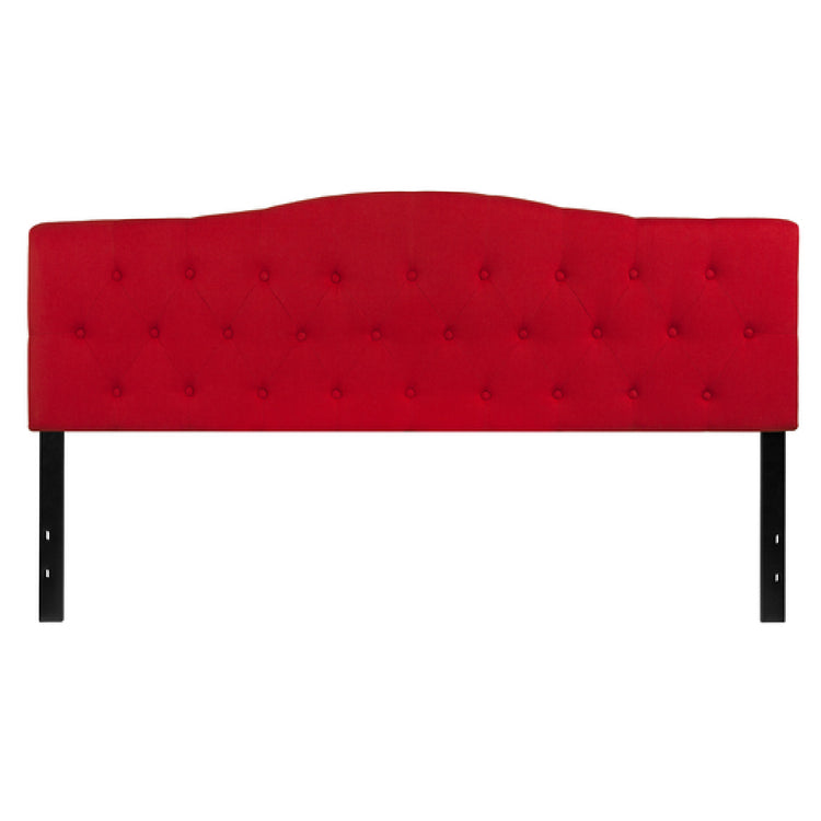 The Flash Furniture HG-HB1708-K-R-GG Cambridge Headboard King Size Contemporary Style is a sophisticated addition to any modern bedroom. This headboard features an elegantly upholstered button-tufted panel, providing a plush and stylish appearance. The diamond pattern stitching enhances its contemporary aesthetic, making it a standout piece in home décor. The product is equipped with sturdy black metal stands that include adjustable bed rail slots, offering versatility and ease of installation across various bed frames. Crafted from high-quality fabric, this headboard comes in an eye-catching red color, and its availability ensures swift shipping, usually within 24 hours, making it an appealing choice for quick room makeovers. The unique combination of design and practicality makes this headboard suitable for various market segments, from individual homeowners looking to enhance their bedroom ambiance to hospitality businesses aiming to elevate guest experiences with stylish yet functional furniture pieces. Its king-size dimensions cater to those seeking both luxury and comfort, ensuring that the Flash Furniture Cambridge Headboard meets diverse needs with its timeless design and adjustable functionality. This product merges contemporary style with practical features, making it a valuable addition to any modern living space.