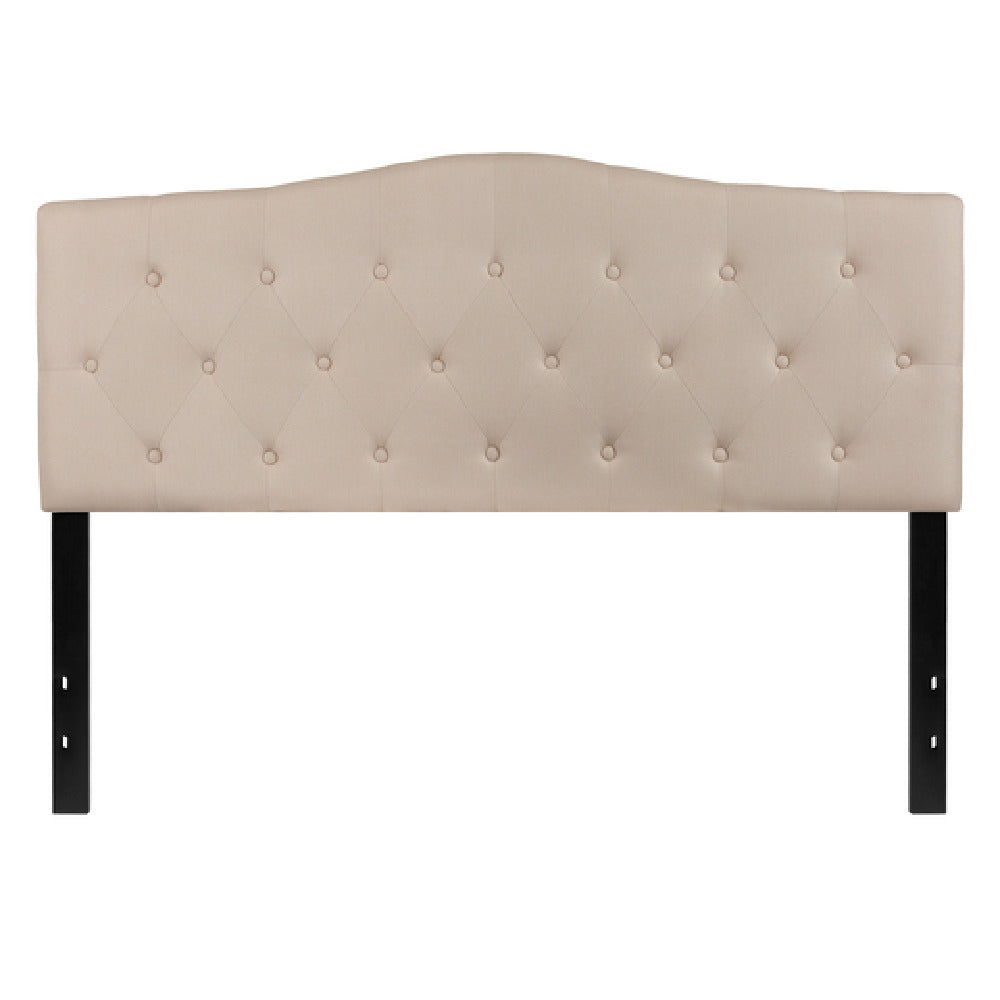 Flash Furniture HG-HB1708-Q-B-GG Cambridge Headboard Queen Size Contemporary Style is a sophisticated and functional addition to any bedroom, catering to both residential and commercial markets. This headboard features an elegantly upholstered button tufted panel, showcasing meticulous diamond pattern stitching that adds a touch of classic luxury to its contemporary design. Its black metal stands are equipped with adjustable bed rail slots, offering versatility to fit various bed frames seamlessly. The fabric used for the upholstery comes in a neutral beige color, making it a versatile choice for different interior décors. The queen-size dimensions ensure that it is suitable for standard queen beds, making it a practical selection for homeowners and hoteliers looking to enhance bedroom aesthetics. This headboard’s sturdy construction ensures long-lasting durability, while its elegant design elevates the overall ambiance of a room. With the product usually in stock and shipping within 24 hours, it presents an appealing option for those seeking both style and convenience. The Flash Furniture HG-HB1708-Q-B-GG Cambridge Headboard is an exemplary choice for those in the market for a high-quality, fashionable, and adaptable headboard solution.