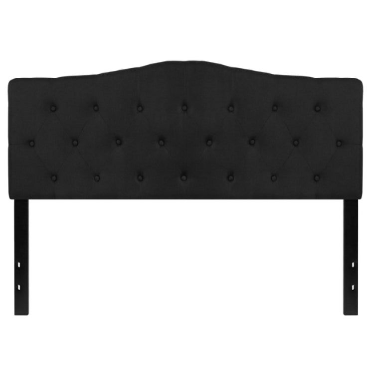 The Flash Furniture HG-HB1708-Q-BK-GG Cambridge Headboard Queen Size Contemporary Style is a meticulously crafted piece designed to enhance both the aesthetics and functionality of your bedroom space. This queen-sized headboard features an upholstered button-tufted panel, presenting an elegant diamond pattern stitching that adds a touch of sophistication and modern flair. Supported by sturdy black metal stands, it includes adjustable bed rail slots to accommodate various bed frame configurations, ensuring seamless integration into different bedroom setups. Made from high-quality fabric in a classic black hue, this headboard is not only visually appealing but also durable and easy to maintain. Its contemporary design makes it suitable for a wide range of interior styles, from minimalist to modern chic, appealing to homeowners seeking to update their bedroom decor with a stylish and practical element. Available in stock and typically shipping within 24 hours, the Flash Furniture HG-HB1708-Q-BK-GG headboard is an excellent choice for those looking to enhance their sleeping space with a piece that combines both functionality and contemporary elegance.