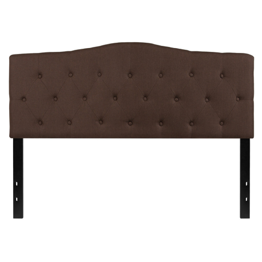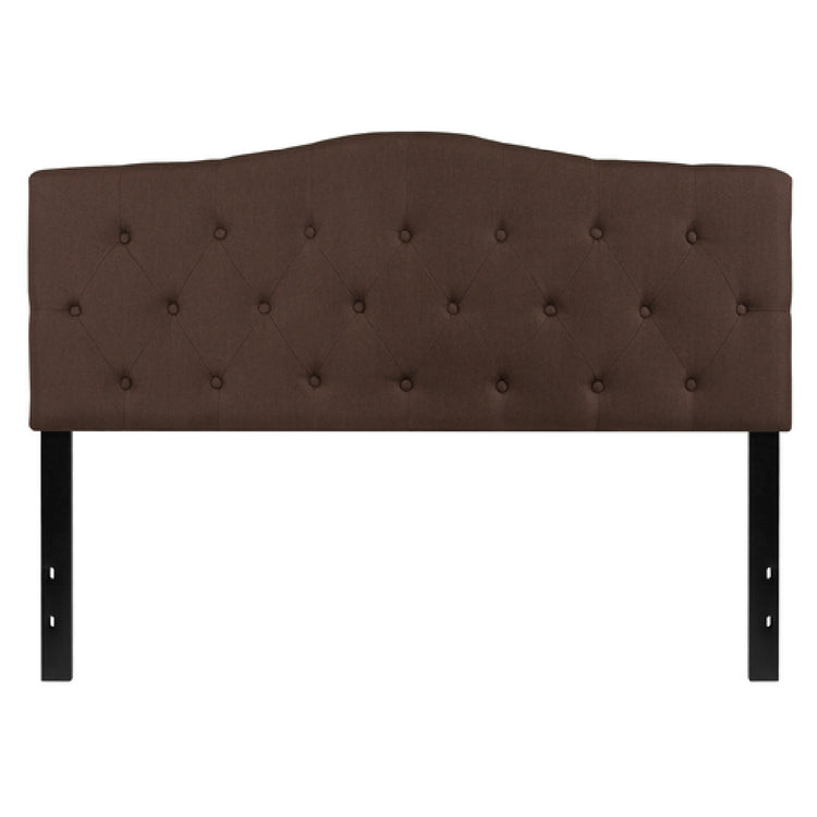 Flash Furniture HG-HB1708-Q-DBR-GG Cambridge Headboard Queen Size Contemporary Style is a sophisticated addition to any bedroom, offering both aesthetic appeal and functional design. This headboard is specifically crafted for a queen-sized bed, featuring a contemporary style that aligns with modern interior decor. Its standout feature is the upholstered button tufted panel, which is adorned with diamond pattern stitching for an elegant, textured finish. The headboard is supported by black metal stands, which are equipped with adjustable bed rail slots to accommodate various bed frames. Constructed from fabric, it comes in a rich dark brown color that adds a touch of warmth and luxury to your space. Typically in stock and ready to ship within 24 hours, this headboard is a practical choice for those who value quick delivery and quality craftsmanship. Whether for a private residence, a boutique hotel, or a stylish rental property, the Flash Furniture Cambridge headboard seamlessly integrates into a variety of settings, enhancing the bedroom environment with its contemporary design and functional versatility.
