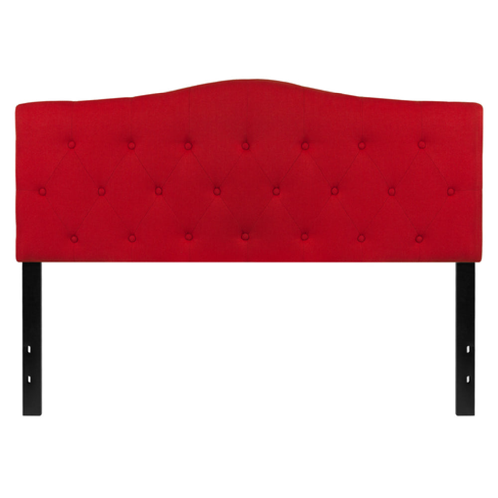 The Flash Furniture HG-HB1708-Q-R-GG Cambridge Headboard Queen Size Contemporary Style is a sophisticated addition to any bedroom, blending modern design with practical features. This queen-size headboard showcases an upholstered button tufted panel, accentuated by intricate diamond pattern stitching that enhances its visual appeal. Supported by black metal stands featuring adjustable bed rail slots, it offers versatility in fitting various bed frames. The use of high-quality fabric in a striking red color adds a touch of elegance, making it a focal point in contemporary interior settings. The headboard is readily available in stock and typically ships within 24 hours, ensuring prompt delivery for those looking to update their bedroom decor swiftly. This headboard is ideal for homeowners seeking a contemporary and stylish upgrade, as well as for commercial environments such as hotels that prioritize both aesthetics and functionality in their furnishings. Its durable construction and timeless design make it a lasting investment for any setting, providing both comfort and style. Whether for personal use or commercial applications, the Flash Furniture Cambridge Headboard combines beauty with utility, making it a valuable addition to modern bedroom spaces.