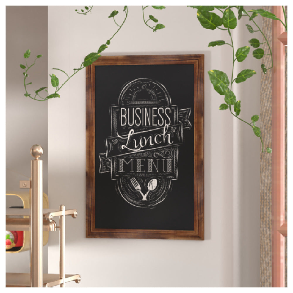 The Flash Furniture HGWA-3GD-CRE8-791315-GG Canterbury Magnetic Wall Mount Chalkboard is a versatile and stylish solution for both home and professional environments. With dimensions of 24" x 36", this chalkboard is designed to cater to a wide range of communication and decorative needs. The solid pine wooden frame not only provides durability but also adds an elegant torched wood finish that enhances its aesthetic appeal. The chalkboard features a non-porous porcelain steel writing surface that is designed for use with both liquid chalk markers and traditional chalk, ensuring a smooth and receptive writing experience. Its magnetic capabilities allow for easy attachment of notes or reminders, making it a practical tool for offices, classrooms, or restaurants. The chalkboard comes complete with an eraser and all necessary hanging hardware, ensuring straightforward installation and use. This product is perfect for those seeking a combination of functionality and style in their communication tools, whether for educational purposes, menu displays, or personal message boards.