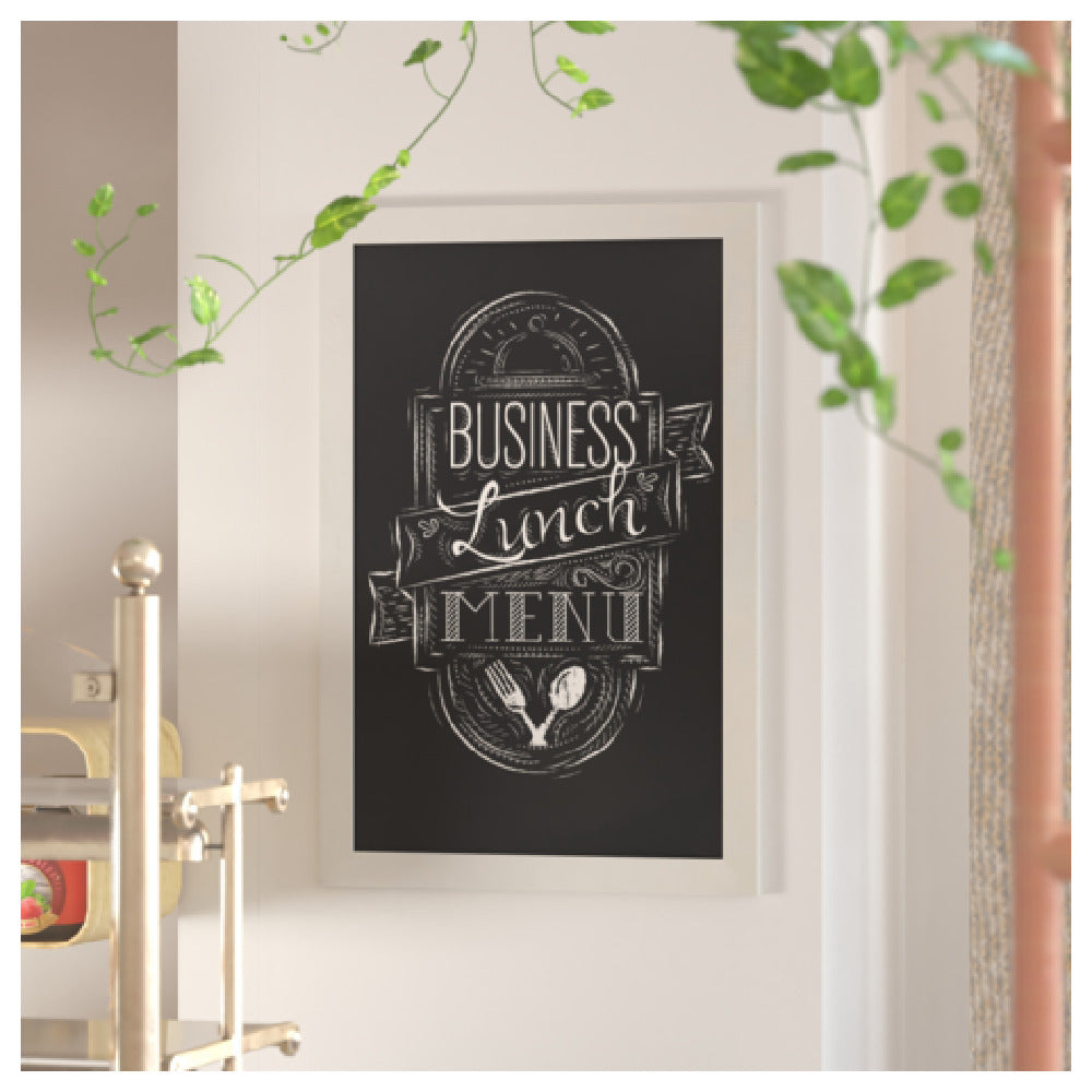 The Flash Furniture HGWA-7GD-CRE8-364315-GG Canterbury Magnetic Wall Mount Chalkboard is a versatile and durable solution for both professional and personal settings. With dimensions of 24 inches by 36 inches, this chalkboard offers ample space for writing and displaying messages. Its non-porous porcelain steel writing surface is designed to work seamlessly with both liquid chalk markers and traditional chalk, offering flexibility in usage. The chalkboard's solid pine wooden frame not only provides a sturdy structure but also adds a touch of elegance with its white finish, making it an attractive addition to any space. This product is equipped with hanging hardware, ensuring easy and secure wall mounting. The inclusion of an eraser makes it convenient for frequent updates and changes, ideal for dynamic environments such as classrooms, cafes, or offices. The magnetic feature enhances its functionality by allowing notes and memos to be attached directly to the surface, catering to diverse organizational needs. This chalkboard serves as a practical and stylish communication tool, appealing to various market segments like educational institutions, hospitality venues, and corporate environments, where effective visual communication is essential.