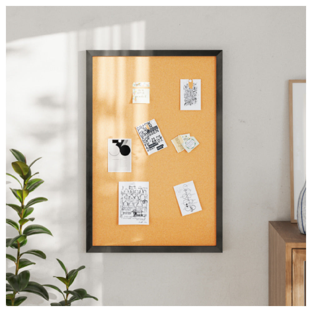 The Flash Furniture HGWA-CK-24X36-BLK-GG Camden Rustic Wall Mount Cork Board 24" x 36" is an essential tool for organizing and displaying information across various professional and personal environments. The board measures 24 inches by 36 inches, providing ample space for pinning notes, reminders, and decorations. This cork board features a rustic design, adding a touch of elegance and charm to any setting. It comes equipped with a sleek black frame, offering a modern yet timeless aesthetic that fits seamlessly into diverse decor styles. Included with the cork board are wooden push pins, enhancing its functionality for immediate use. The wall-mounted design optimizes space utilization, making it a practical solution for offices, classrooms, and home use. Its sturdy construction ensures durability, making it an ideal choice for those seeking a reliable and stylish organizational tool. The Flash Furniture HGWA-CK-24X36-BLK-GG combines practicality with a rustic appeal, catering to the needs of different market segments, from educational institutions to corporate environments. Its versatile design and high-quality materials make it a valuable asset for anyone looking to enhance their space with both functionality and style.