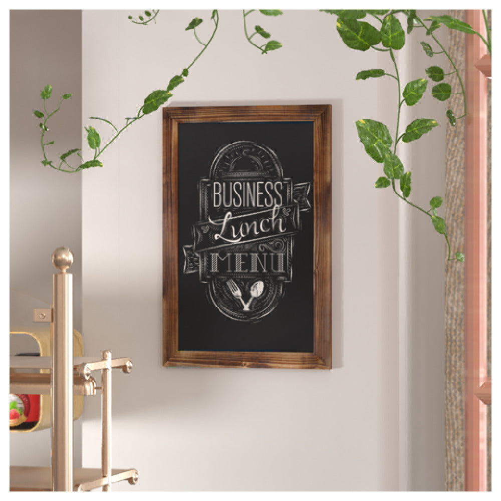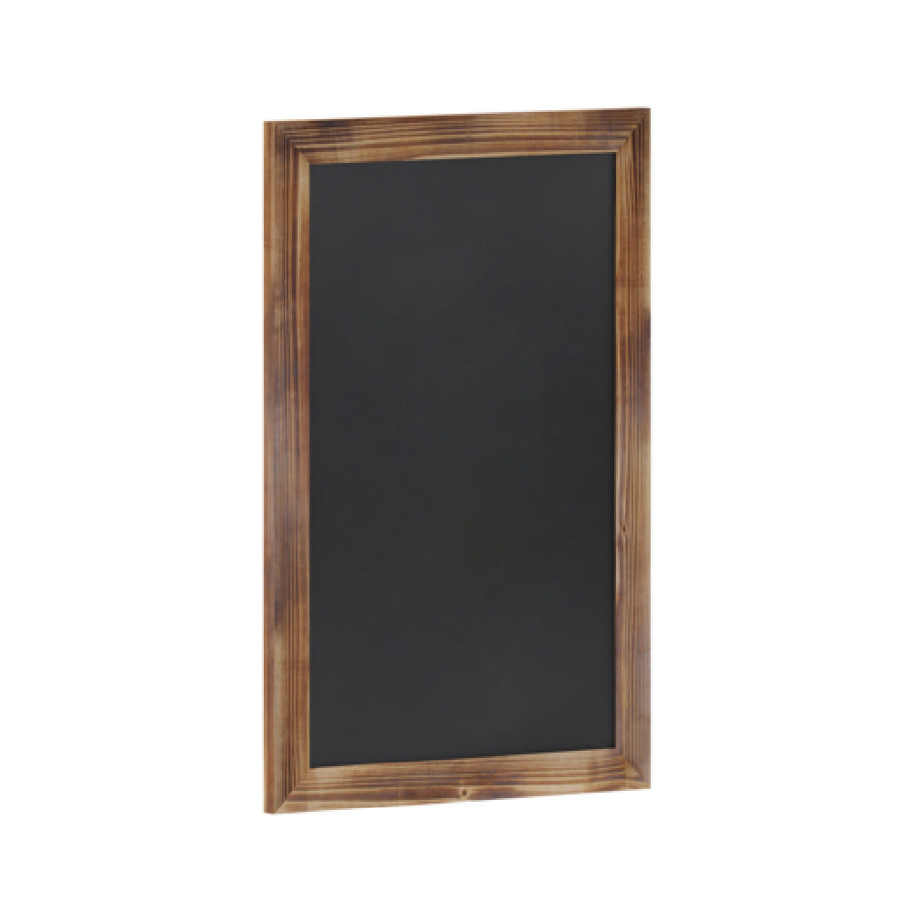 The Flash Furniture HGWA-GDIS-CRE8-462315-GG Canterbury Magnetic Wall Mount Chalkboard is a versatile display solution measuring 20" x 30", perfect for various professional and personal settings. Designed with a solid pine wooden frame, this chalkboard combines durability with a rustic aesthetic, enhanced by a torched wood finish. The non-porous porcelain steel writing surface offers a superior writing experience, compatible with both liquid chalk markers and traditional chalk, making it an adaptable tool for businesses, schools, and home use. The magnetic feature adds functionality, allowing users to attach notes or documents directly to the board. This chalkboard includes hanging hardware for easy installation and an eraser for convenient maintenance. The Canterbury Magnetic Wall Mount Chalkboard is an ideal choice for those seeking a reliable and stylish writing surface in retail displays, educational environments, or home décor. Its high-quality materials ensure longevity, while the sleek design complements a wide range of interiors, making it a practical and attractive addition to any space.