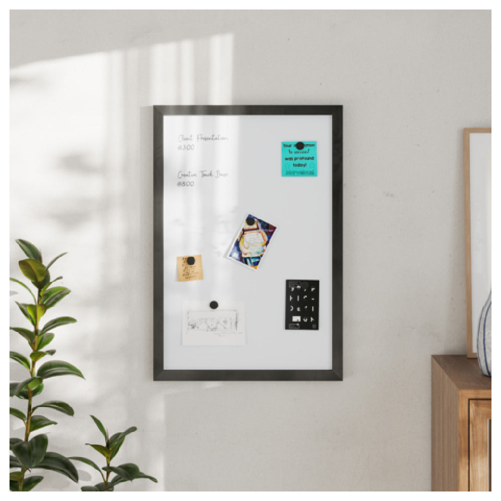 The Flash Furniture HGWA-WHITE-20X30-BLK-GG Bristol Wall Mount White Board 20" x 30" is a versatile solution for a variety of settings, providing a compact yet ample writing surface for both personal and professional use. Measuring 20 inches by 30 inches, this wall-mounted whiteboard is designed to fit seamlessly into small to medium-sized spaces, offering a practical size for classrooms, offices, or home environments. The product includes a dry erase marker and four magnets, enhancing its functionality by allowing users to write and post notes conveniently. The black accent adds a touch of sophistication, making it a stylish addition to any decor. This whiteboard is particularly beneficial for educators and business professionals who require a reliable tool for presentations, brainstorming, and teaching. Its magnetic surface not only serves as a writing board but also doubles as a bulletin board, making it a dual-purpose asset. The Flash Furniture Bristol White Board is known for its durability and ease of maintenance, simplifying the task of keeping it clean and ready for use. This product effectively combines practicality with aesthetic appeal, catering to diverse market segments seeking efficient and stylish organizational tools.