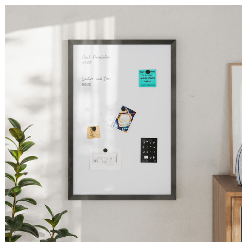 Flash Furniture HGWA-WHITE-24X36-BLK-GG Bristol Wall Mount White Board 24" X 36" presents a versatile and functional solution for various environments, from classrooms to corporate offices. This compact white board, measuring 24 inches by 36 inches, is engineered to provide a smooth writing surface that enhances productivity and creativity. Included with the board are one dry erase marker and four magnets, offering immediate usability upon installation. The black frame adds a sleek, professional touch, blending seamlessly with diverse interior aesthetics. Its wall-mounted design maximizes space efficiency, making it ideal for areas with limited room. The robust construction ensures durability, supporting long-term use without compromising on performance. Whether used for brainstorming sessions, presentations, or organizing daily tasks, the Flash Furniture Bristol Wall Mount White Board is a practical tool that caters to the needs of educators, business professionals, and students alike. The combination of its manageable size and included accessories underscores its value as an essential asset in any setting requiring effective communication and organization tools.