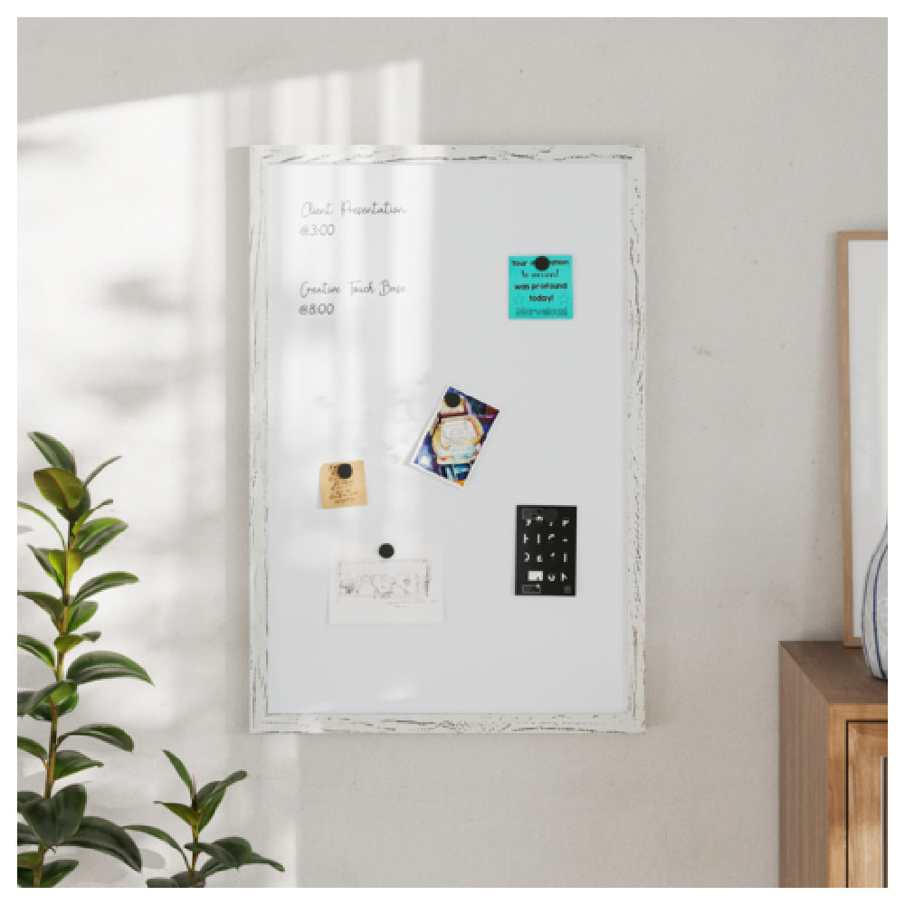 The Flash Furniture HGWA-WHITE-24X36-WHTWSH-GG Bristol Wall Mount White Board 24" x 36" is a versatile addition to any educational, corporate, or personal setting where communication and creativity are key. This white board, with dimensions of 24 inches by 36 inches, provides ample space for presentations, brainstorming sessions, or classroom use, making it suitable for various environments. The product includes essential accessories such as one dry erase marker for a seamless writing experience and four magnets to conveniently hold notes or documents on its surface. The board features a stylish whitewashed finish that adds a touch of elegance to any space while maintaining a professional appearance. Its wall-mount design allows for easy installation, saving valuable floor space and enhancing the room's functionality. This white board is crafted to cater to different segment markets within the industry, from educational institutions seeking durable and functional teaching tools to businesses looking for effective meeting aids. The Bristol Wall Mount White Board stands out with its combination of practicality and aesthetic appeal, making it an essential tool for enhancing visual communication and collaboration in any setting.