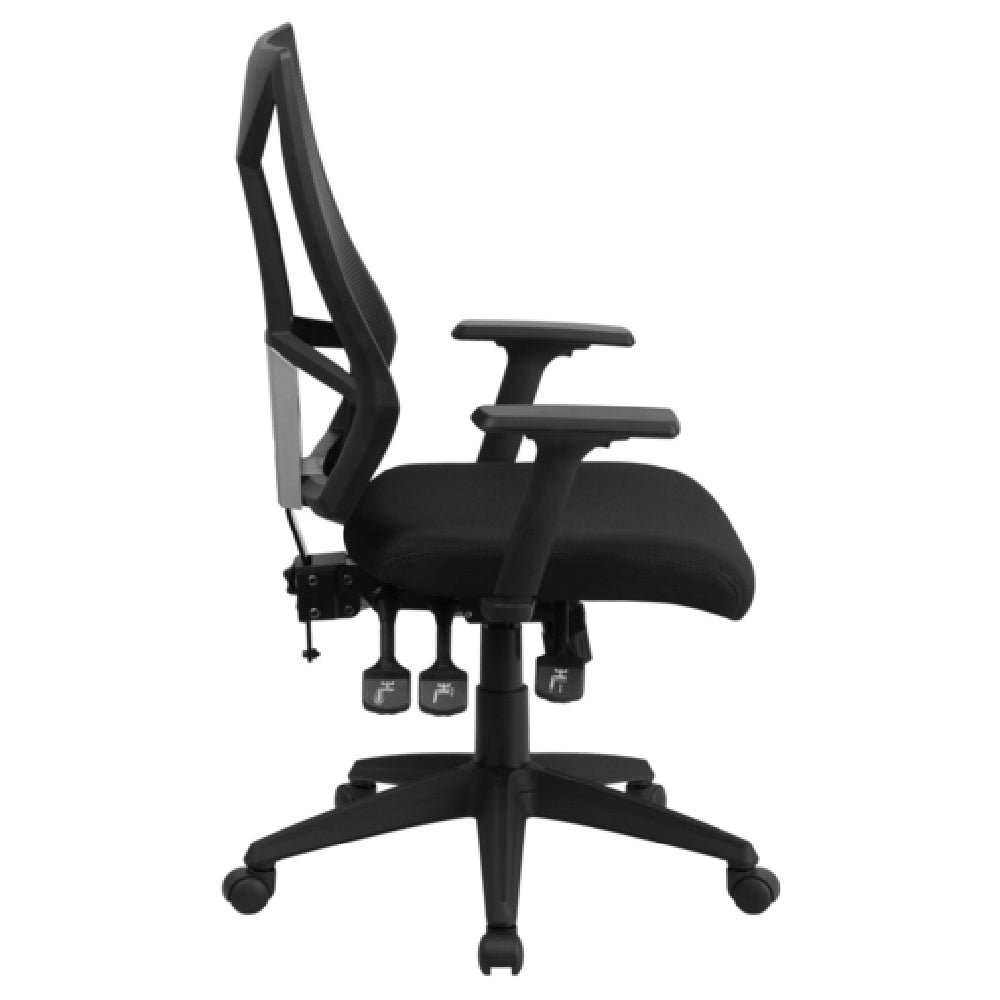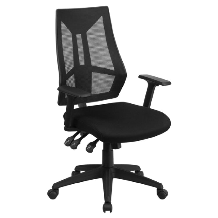 The Flash Furniture HL-0017-GG Swivel Task Chair is a versatile seating solution designed to enhance comfort and functionality in office environments. With an adjustable height range of 41 to 46-1/2 inches, it caters to various user preferences, ensuring ergonomic support throughout the day. The chair boasts a high back design and features a breathable mesh back that adjusts by 1-3/4 inches, along with a padded mesh upholstered waterfall seat to promote healthy circulation. Built-in lumbar support further enhances user posture, making it ideal for prolonged use. The chair's triple paddle control mechanism allows for precise customization, including infinite-locking back angle adjustment and a multi-tilt lock mechanism. Additionally, the tilt tension adjustment knob and height-adjustable padded arms offer personalized comfort. Constructed with CA117 fire retardant foam for safety, it includes a heavy-duty black nylon base with dual wheel casters for mobility and stability. Supporting a weight capacity of 250 pounds, this chair is a reliable choice for various office settings, blending functionality with durability. Available in stock, it typically ships within 24 hours, offering a practical seating option for dynamic work environments.