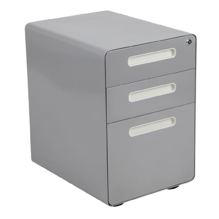 Flash Furniture HZ-AP535-01-GRY-GG Mobile Drawer Cabinet is a versatile storage solution designed for both home and office environments, offering practical features that cater to various organizational needs. Measuring 16 inches in width, 21 inches in depth, and 24 inches in height, this 3-tier drawer cabinet includes two utility drawers each measuring 13 inches by 18-3/4 inches by 4-1/2 inches, along with a larger 13 inches by 18-3/4 inches by 11-1/2 inches file drawer, suitable for storing essential documents and office supplies. The cabinet is equipped with a lockable upper drawer, providing added security for sensitive materials. Its mobile functionality is enhanced by four low-profile casters, making it easy to reposition as needed within your workspace. The unit features inset handles for a sleek appearance, and includes a removable pencil tray, adding to its utility as a professional organizer. Constructed with a durable steel frame and finished in gray, this cabinet is both sturdy and stylish. This product is a reliable choice for those looking to streamline their storage solutions, combining mobility with robust construction, typically shipping within 24 hours for in-stock items.