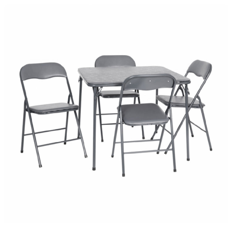 Flash Furniture JB-1-GY-GG Madison Folding Card Table And Chair Set is designed to meet the needs of both indoor and outdoor environments, making it an adaptable choice for various settings. The set includes a folding table measuring 33-1/2"W x 33-1/2"D x 27-3/4"H, and four folding chairs, each measuring 17-1/4"W x 18"D x 31-1/4"H. The table is engineered to support a distributed weight capacity of 130 lb., while each chair accommodates a static load capacity of 300 lb., ensuring durability and robustness. The table features a 3/16" thick padded vinyl top, providing a comfortable and secure surface for games and dining. Enhanced with CA117 sponge foam padding and supported by powder-coated metal legs, the set ensures long-lasting use. Plastic floor guides are included to protect surfaces from scratches. Its compact and foldable design allows for easy storage and transport, making it especially convenient for those with limited space. The gray color adds a neutral, stylish look that complements various decors. The Madison Folding Card Table and Chair Set is in stock and usually ships within 24 hours, offering a quick solution for your seating and table needs.