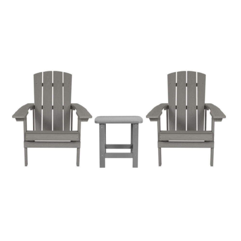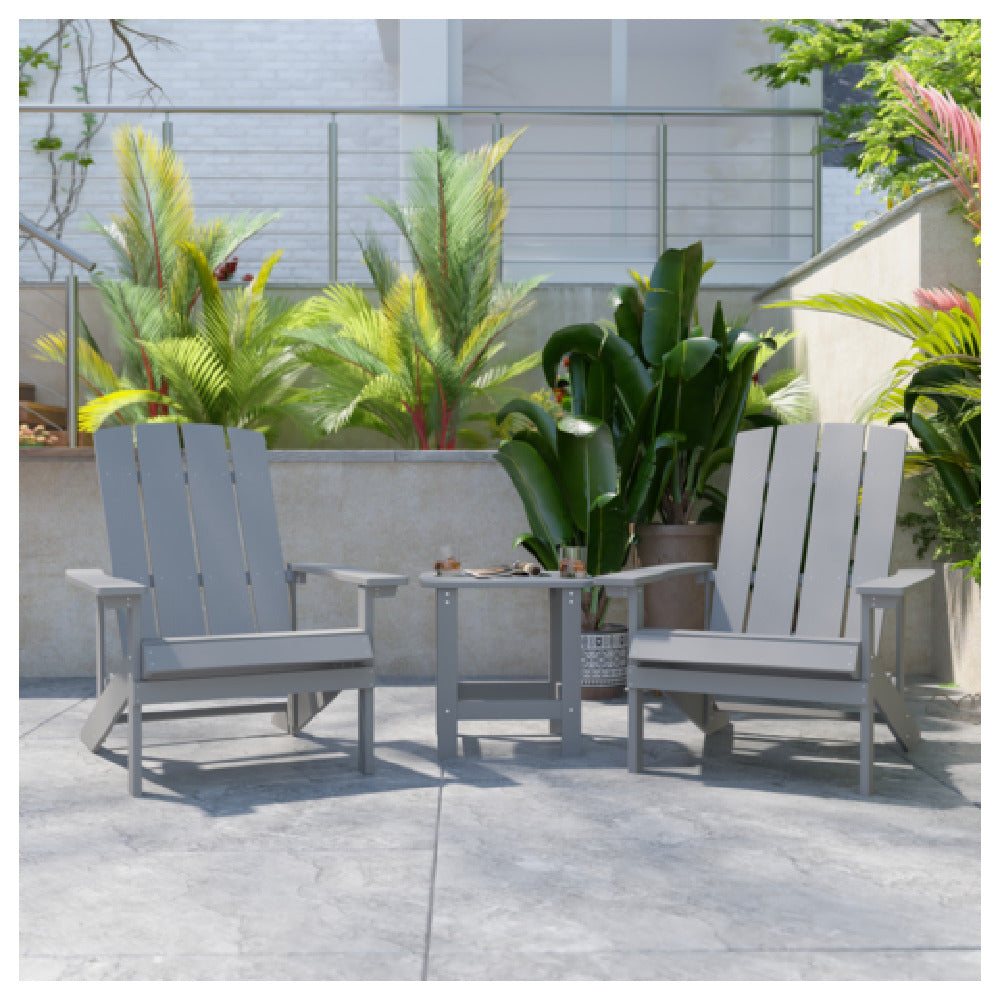Flash Furniture JJ-C14501-2-T14001-GY-GG Charleston Adirondack Chairs With Side Table - 1/Set
