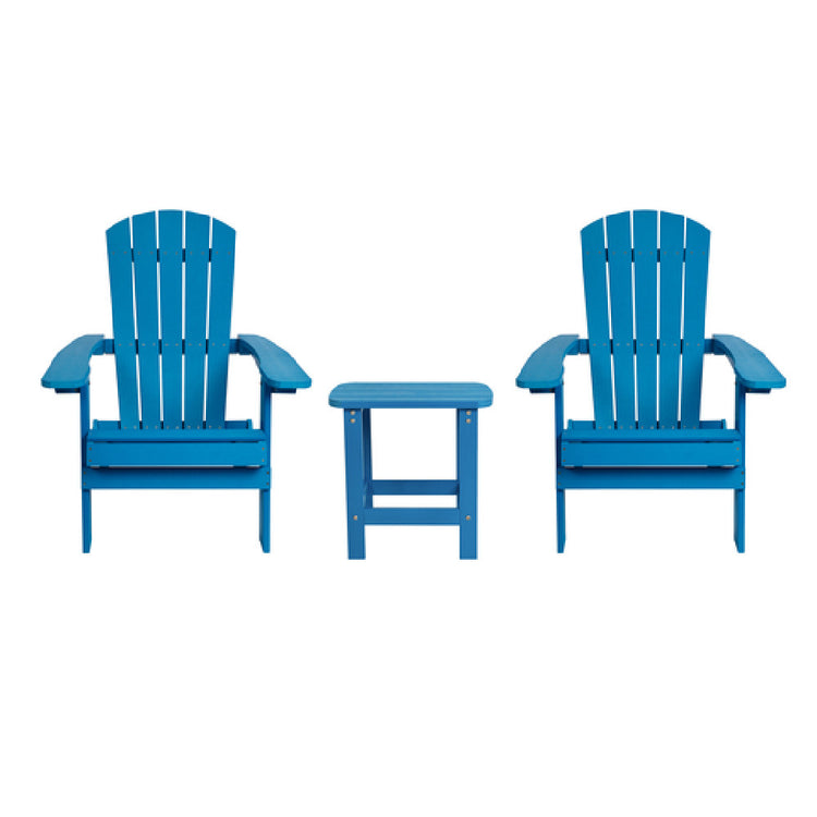 Flash Furniture JJ-C14505-2-T14001-BLU-GG Folding Adirondack Chairs With Side Table - 1/Set