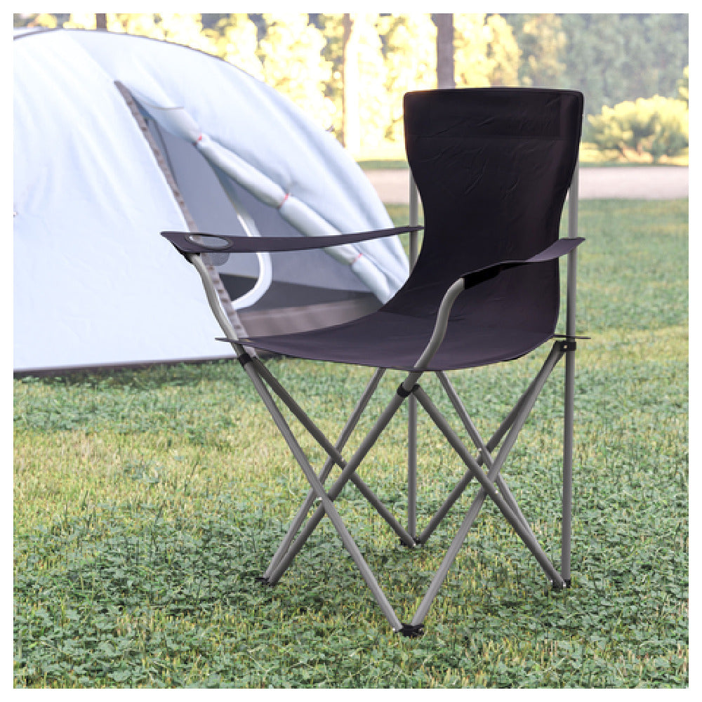 Flash Furniture JJ-CC303-BK-GG Quad Folding Camping And Sports Chair With Armrest Cupholder Portable Black Indoor/Outdoor Fishing Chair With Extra Wide Carry Bag [JJ-CC303-BK-GG]