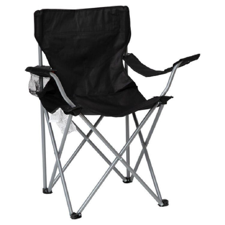 The Flash Furniture JJ-CC303-BK-GG Quad Folding Camping and Sports Chair with Armrest Cupholder is a versatile seating solution designed for both indoor and outdoor use. This portable black chair is particularly advantageous for camping, sports events, and fishing. It is engineered with a quad folding mechanism, allowing for compact storage and easy transport, making it ideal for outdoor enthusiasts. The chair includes a convenient armrest cupholder, adding functionality by keeping beverages within reach during activities. One of its standout features is the extra wide carry bag, which facilitates effortless carrying and storage, ensuring the chair can be taken anywhere with ease. The Flash Furniture JJ-CC303-BK-GG is crafted to cater to different segment markets, from casual campers to dedicated anglers, by providing a practical seating option that combines durability and convenience. Whether used in a backyard, on a camping site, or by the lakeside, this chair ensures comfort with its thoughtful design, maintaining a balance between portability and stability. Its sleek black aesthetic also adds a touch of elegance, making it suitable for various settings. This chair represents a perfect blend of functionality and style, tailored to meet the demands of versatile outdoor and indoor activities.